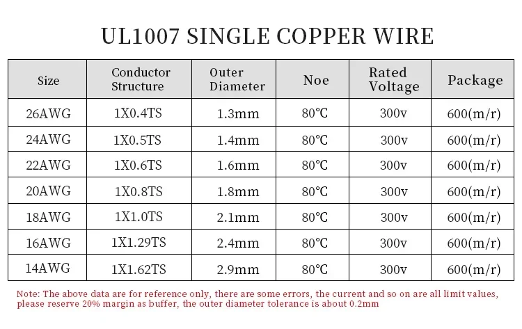 UL1007 одножильный медный провод 14/16/18/20/22/24/26 AWG