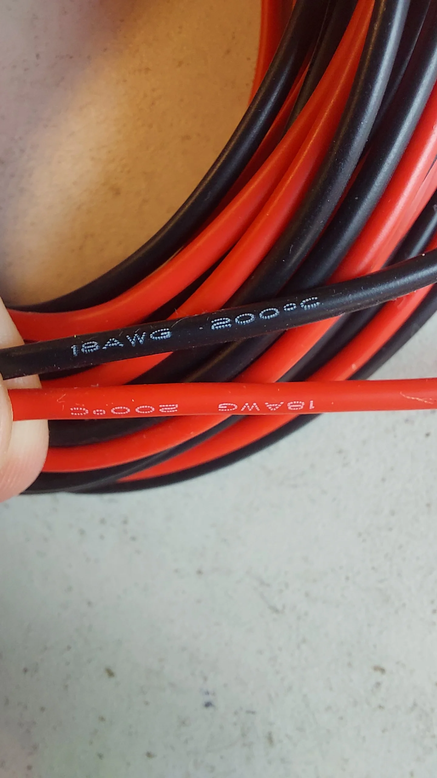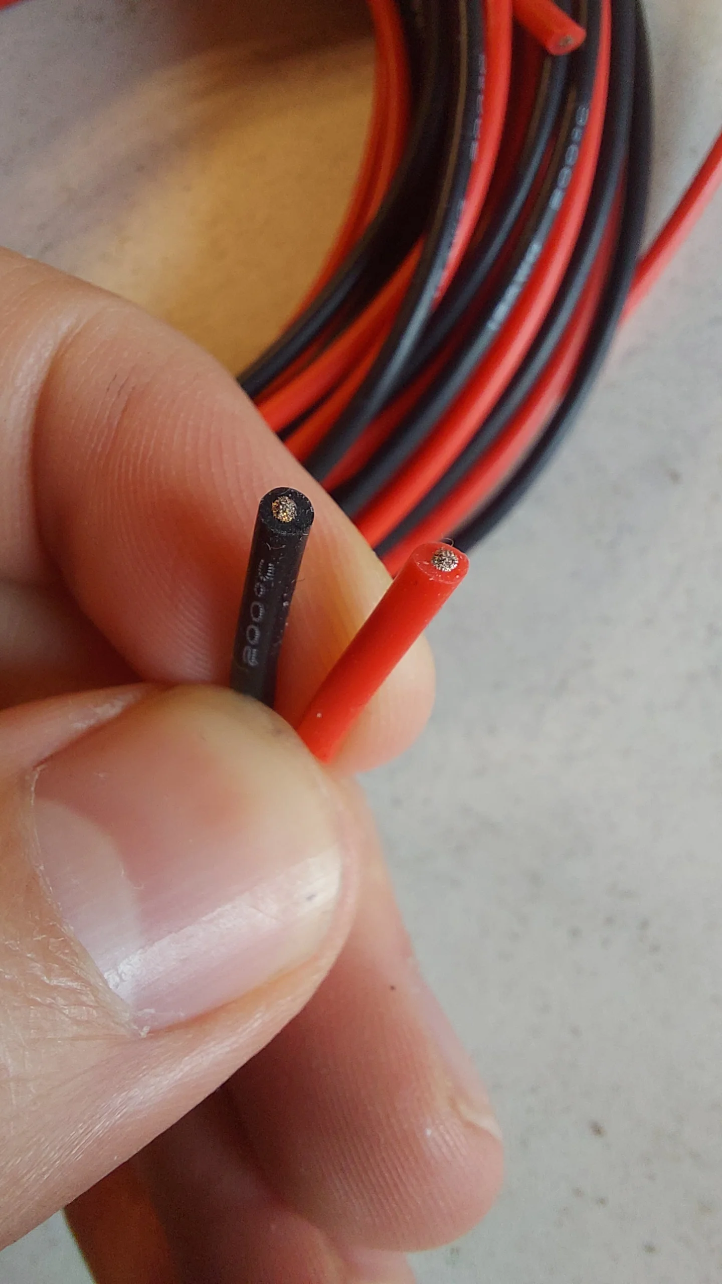 16 awg красный и чёрный. Провод соответствует заявленным параметрам. Продавец прислал 105см. На фото диаметр в изоляции и при сжатии. Провод не восстанавливает форму. Буду использовать в самоделках.