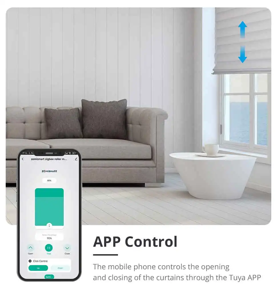 - Управление Zigbee: работайте с концентратором Tuya Zigbee или концентратором Zemismart M6 (работа с Homekit).Вы можете управлять двигателем вверх или вниз через голос или приложение на своем мобильном телефоне.