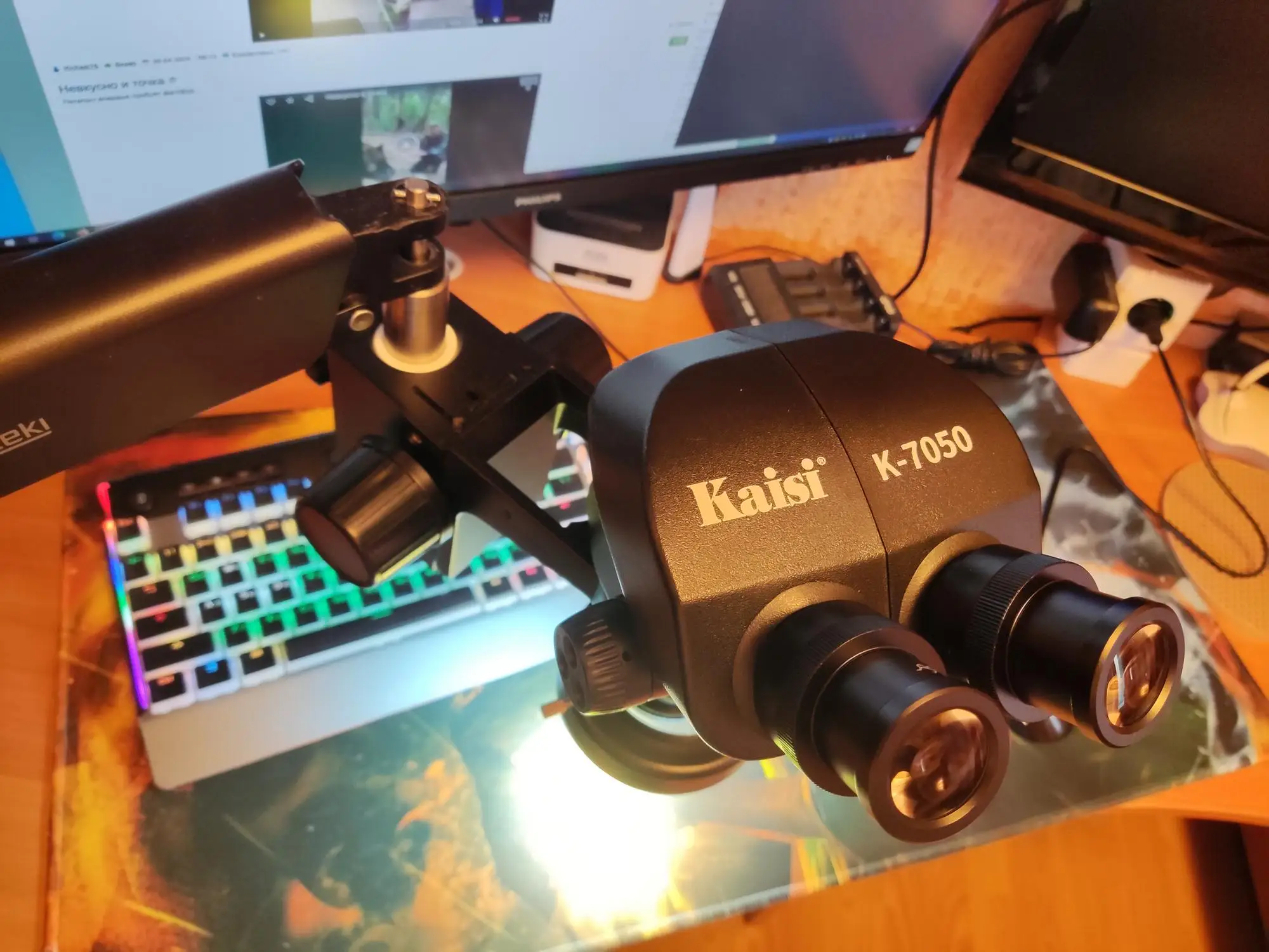Микроскоп удивил. Ожидал от него намного меньше и был приятно удивлён. Резкость картинки отличная, поле видимости с окулярами 10-22 и с линзой Барлоу 0,5 - 4 пальца руки на расстоянии 18см. На максимально увеличении без линзы можно рассмотреть подробности пайки в 0.1мм. Боялся, что стрясут оптику при доставке, но всё отлично. Доставка была быстрой. Рекомендую к покупке!Andrey Victorovich C. 30 апреля 2024