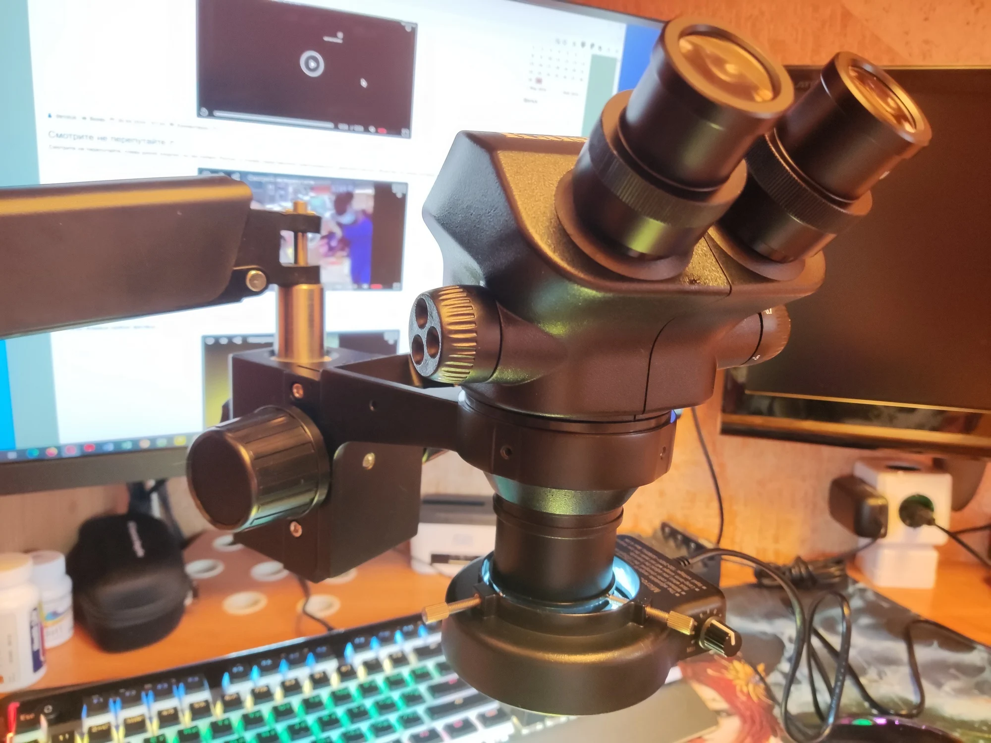 микроскоп оправдал ожидание, доставили очень быстро, очень светлая оптика, перешёл на него с тринокуляра