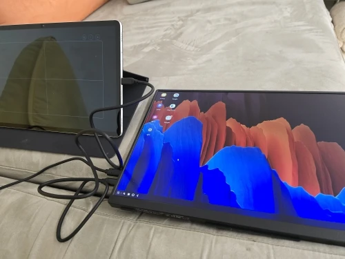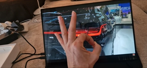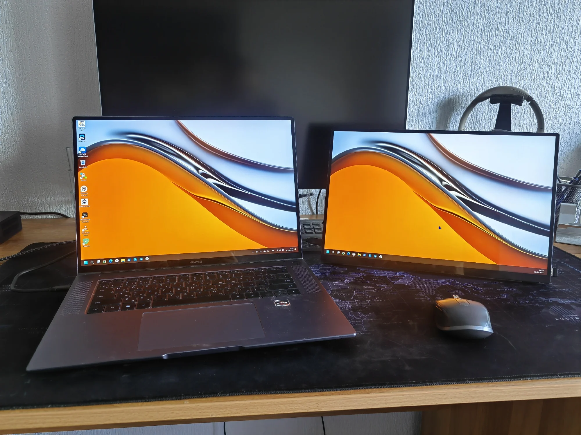 Монитор полностью соответствует заявленным характеристикам. Корпус тонкий, алюминиевый, очень приятный на ощупь (нет ощущения дешёвого пластика). Встроенная подставка держит, но не очень устойчиво. В комплекте очень годные провода и простенький чехол (но лучше, чем ничего). Яркость достаточная, цвета в целом норм, но цветовой баланс не совсем удалось подогнать к ноутбуку, так что тон окон при перетаскивании с монитора на монитор отличается. Звук - полное говно. Максимальная громкость примерно как на ноуте, но детальность в разы ниже. Лучше бы выпилили динамики и сделали на пару долларов дешевле и несколько граммов легче. Тачскрин работает - под Windows нормально, под Linux немного странно, но это проблема Linux, а не монитора. Питания хватает от ноутбука или телефона, даже не обязательно подключать внешний блок питания (естественно, будет быстрее жрать батарею). При внешнем питании, ожидаемо, ноут/телефон заряжаются. С телефоном Huawei P50 работает странно - в режиме дублирования экрана тач работает, а в режиме десктопа - нет (недостаток EMUI 14). Если бы выбирал сейчас - лучше бы доплатил за 4K версию, т.к. на 2.5K LCD зернистость немного видно (на почти такого же размера экране ноутбука, тоже 2.5K но OLED - пиксели почти не видно). Соотношение 16:10 для работы лучше, чем традиционный 16:9, но 4:3 как у Huawei было бы вообще идеально. Версия с тачем покрыта стеклом заподлицо с краями (тач сенсор), поэтому тяжелее почти на 200грамм и глянцевая. Без тача экран матовый и с рамкой вокруг экрана. Так что если нужна портативность - думайте, нужен ли вам сенсор. Подключение проводов сбоку на практике выглядит убого и мешает поставить монитор ближе к ноутбуку, лучше бы были сзади - дань толщине корпуса, но у некоторых портативных мониторов коннекторы в "ноге". В целом, продукт не идеален, но свою цену оправдывает. Более дорогой экран мне будет тупо жалко таскать с собой.