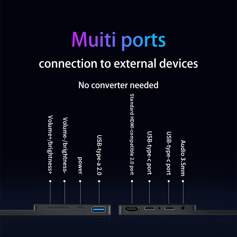 [Двойные молниеносные болты типа C]VCHANCE-AQ16TH имеет два болта молнии типа c, все порты типа c поддерживают функцию питания и зеркального отображения. Больше не беспокойтесь о неправильном питении по порту, чтобы сжечь материнскую плату.
