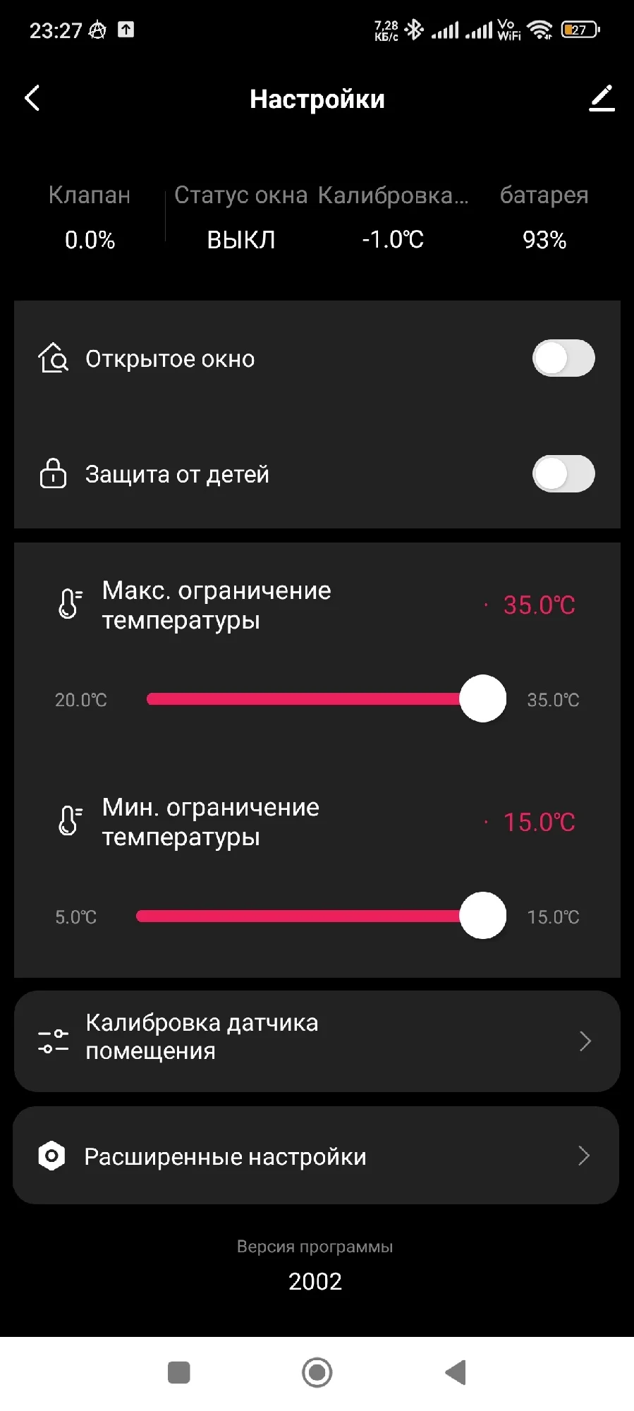 В случае изменения температуры между полом и воздухом вы можете установить значение калибровки с помощью приложения, чтобы убедиться, что окончательная температура достигает вашего идеального значения.