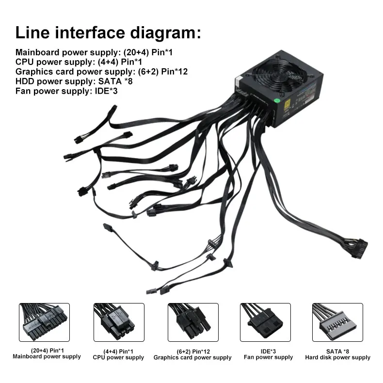 Brand New Full Moduler ATX Power Supply Colorful 2000W ETH BTC Mining Power...
