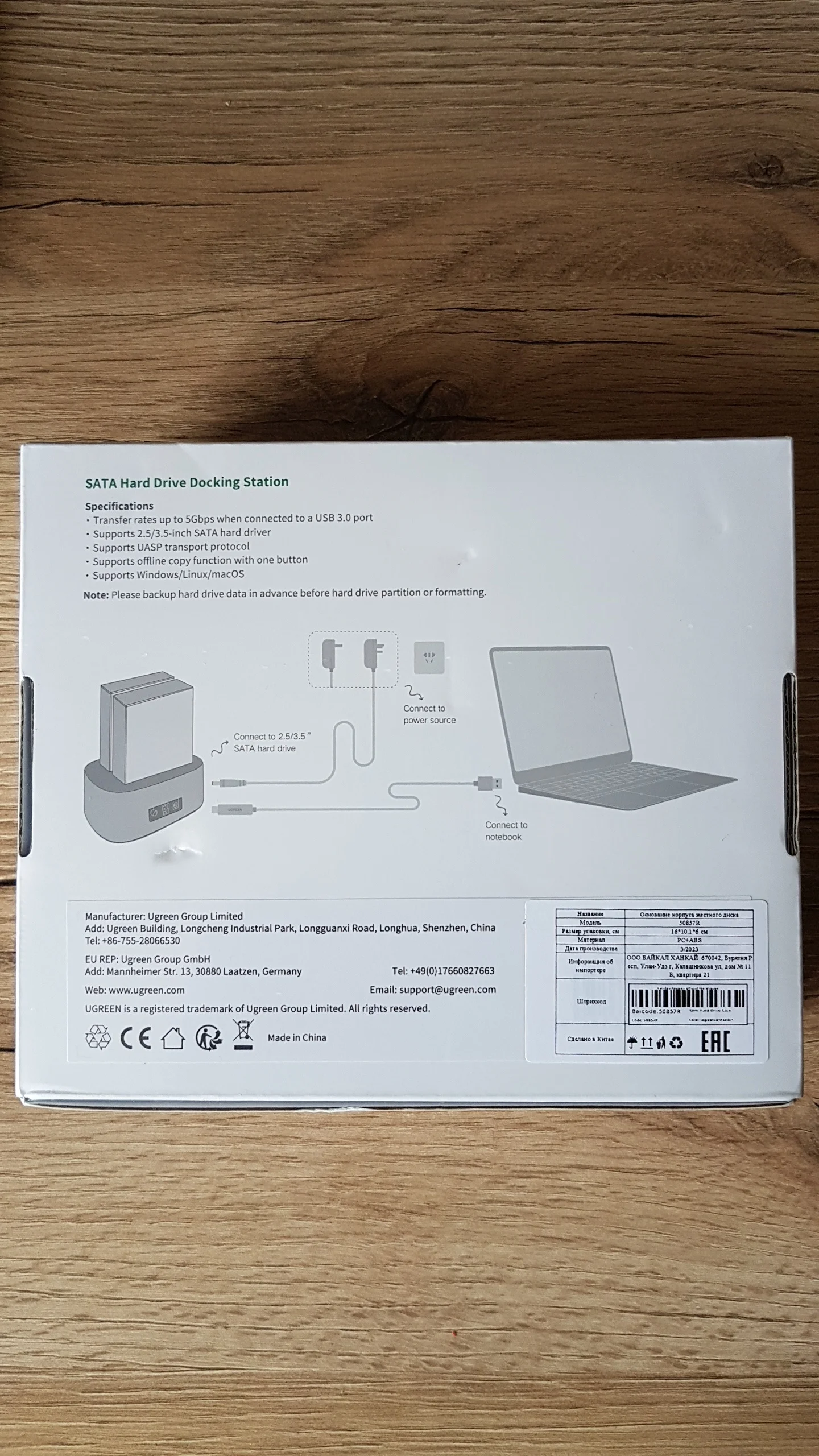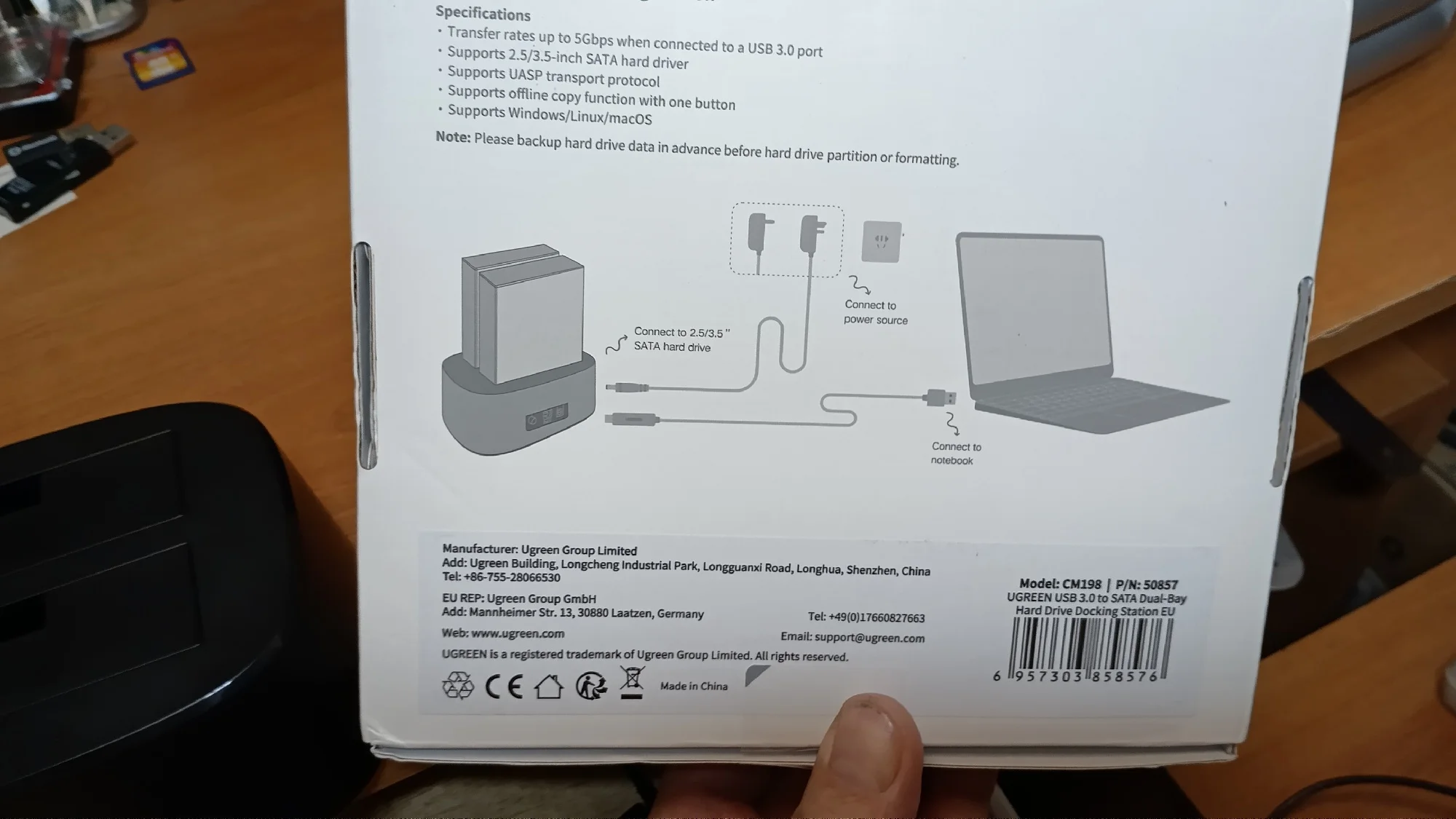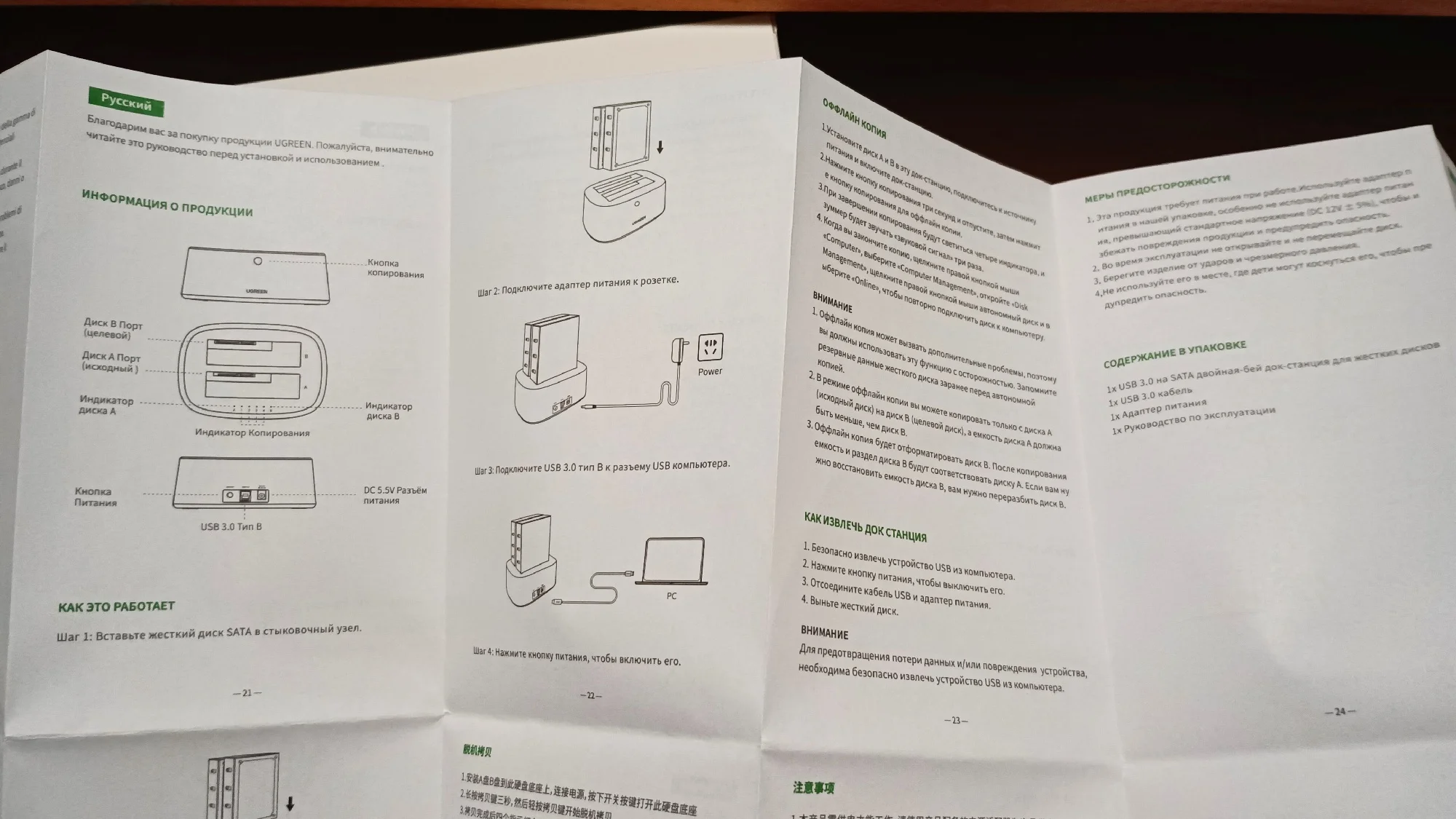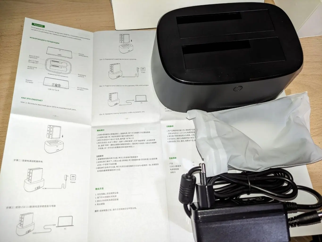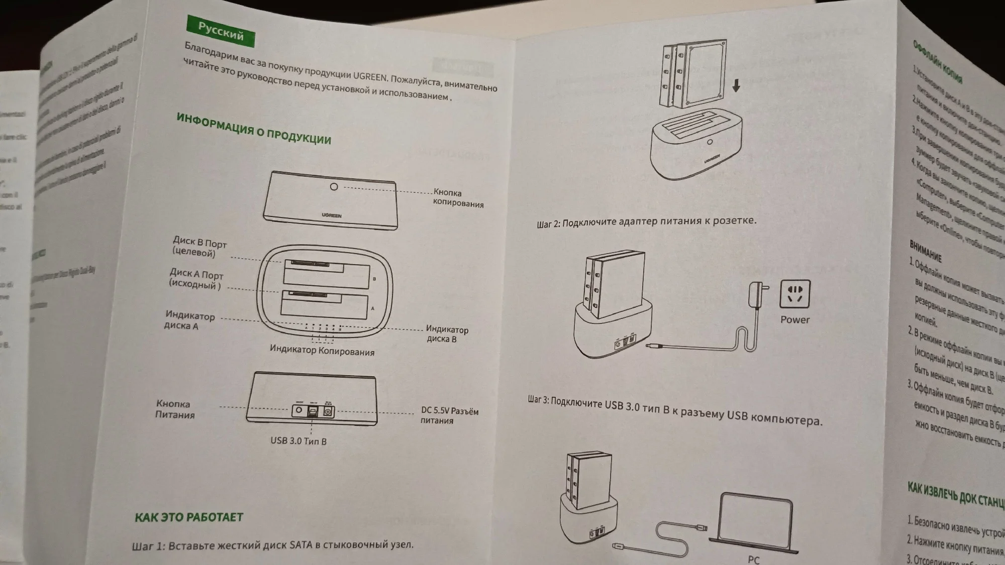 Доставка, меньше недели. Трек отслеживался. Покупал для переезда жестких дисков из системного блока в данную док-станцию. Переезд прошёл великолепно. Док-станция и прилагаемые аксессуары качественно изготовленны. Диски определились сразу, греются приемлемо (сейчас жарко у наших краях). Попробовал установить проблемный диск в данную док станцию, диск определился. Попробывал клонирование и понял что данная опция для весьма длительного и неторопливого переноса (даже небольшого по ёмкости диска) данных с одного на другой диск без участия компьютера. Так что, опция так себе. Клонирование посредством специального ПО гораздо быстрее. В общем и целом, док станция понравилось, хорошее соотношение цены и качества. С продукцией Ugreen знаком давно, пока проблем не было. Рекомендую. Спасибо!Александр Т. 3 августа 2023