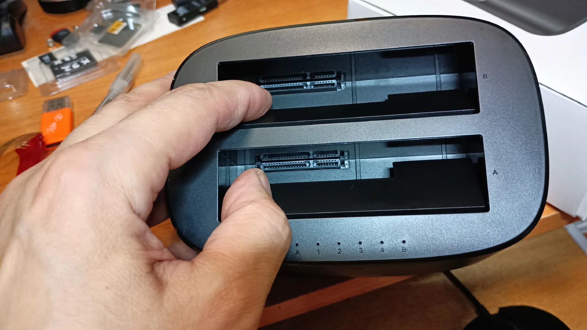 Achieve copying files from hard disk A to B without connecting to a computer (Capacity requests B A)