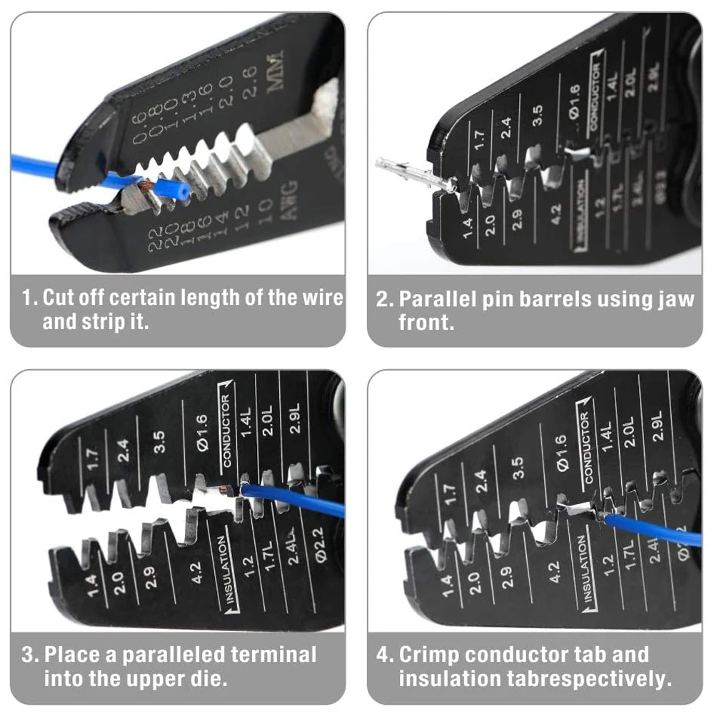 *Универсальность* 15 штампов различного размера делают этот продукт подходящим для клемм широкого диапазона размеров, от маленьких до больших.