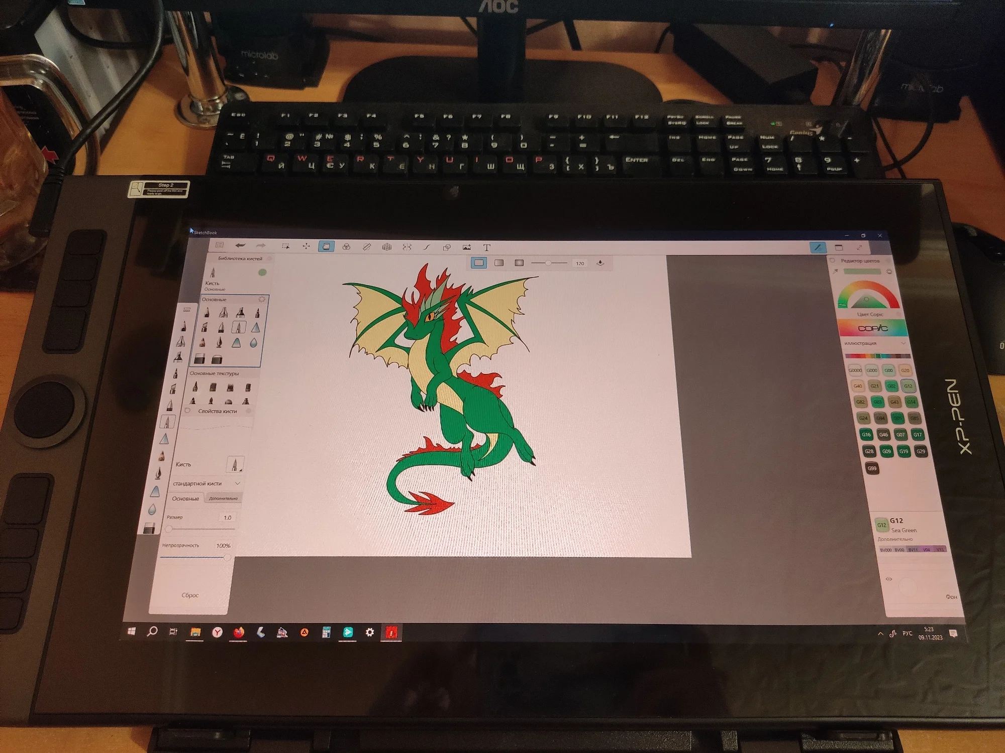 Планшет потрясающий. Действительно будто на бумаге рисуешь. Параллакса нет от слова совсем! Я в полном восторге. Итак, начинала я на Mi Pad 5 от Xiaomi. Рисовать очень приятно, но таблетка - это таблетка и делать полноценные арты на нем грустно и сложно. Поэтому был куплен этот экранник. Второе поколение, все дела. Посылка пришла как заявлено (из Росси по России за неделю). Без повреждений. Наполнение как в описании. Чистый минимум: планшет, стилус в модном кейсе с доп.наконечниками (кстати, очень удобно, мне понравился такой вариант хранения), кабеля, адаптеры для разных розеток, перчатка, салфетка, инструкция. Сам экранник тонкий, но прочный. Стоит отметить, что качество сборки и материалов на высоте. Если честно, то была приятно удивлена. Никаких люфтов, никаких зазоров или хлипких соединений. Кабель как по маслу встаёт. Подключился без проблем (красный usb - питание в розетку, черный - в комп), драйвера скачиваются с сайта и устанавливаются тоже без проблем. Далее следует круг ада с настройками (но для начала можно оставить по умолчанию и не париться), и все готово. Как я уже писала, рисовать на нем приятно. Кнопки и на планшете, и у пера удобные и прожимаются хорошо. Стилус идёт мягко, легко и просто. Наклоны, нажимы - это все есть (кстати, это можно отключить, если что). Где линию провел, там она и появляется. И это, пожалуй, самое главное для экранников. В общем, похоже на Mi Pad 5, только лучше. С первым поколением экранников не сравнить, конечно (привет, бренд Bosto). Совсем другие ощущения. Кстати, планшет не нагрелся за несколько часов работы. Еще порадовало наличие отдельной кнопки включения и качельки яркости под гнездом. Удобно, блин. В целом, это качественная вещь, которая своих денег стоит. Вспоминая первое поколение планшетов (в частности Bosto BT-16HDT) и опыт с Mi таблеткой, были опасения, что он не дотянет уровень Xiaomi. Я долго сомневалась, но в итоге все же решилась и совсем не жалею) Продавцу спасибо и всех благ)) З.Ы. Не, серьезно, огонь огненный. Эмоций через край)