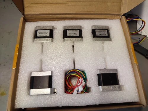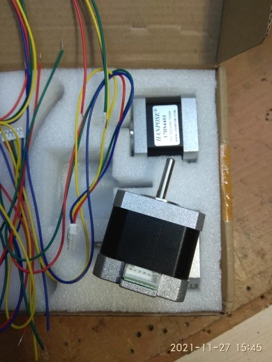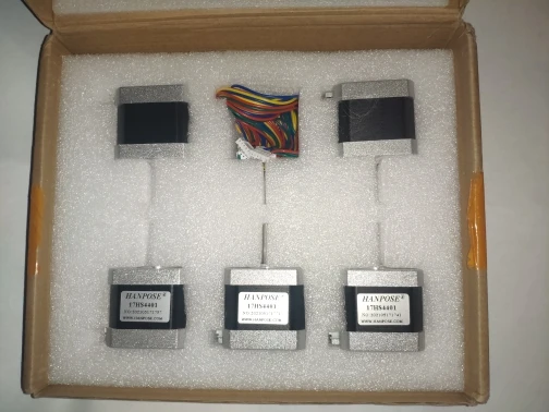 купил за 2081р комплект из 5 штук сразу. пришло очень быстро, меньше чем за 2 недели. забрал на кассе пятерочки. коробка несколько помялась, но внутри вспененный материал, и ничего не повредились. как и указано в описании, двигатели почти на 4см высотой (не знаю насколько это большой плюс, возможно, из-за бОльшего объёма железа статора и момент побольше будет). а вот сопротивление обмотки не совпадает с заявленным: замеряется 1,9 Ом, а по описанию товара должно быть 1,5 Ом. но надо сказать, что на всех двигателях, на всех обмотках одинаковое, это отлично! посмотрю в действии, когда дособеру станок, будут ли шуметь. проверил все двигатели на обрыв фаз, на замыкание фаз на корпус, на межфазное - всё отлично. плата-контроллер двигателей пока не пришла, проверить вращение и усилие ещё не могу. но в целом очень доволен товаром и продавцом! рекомендую тут брать