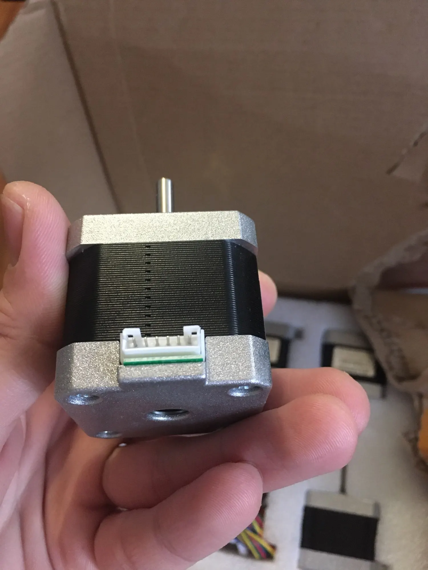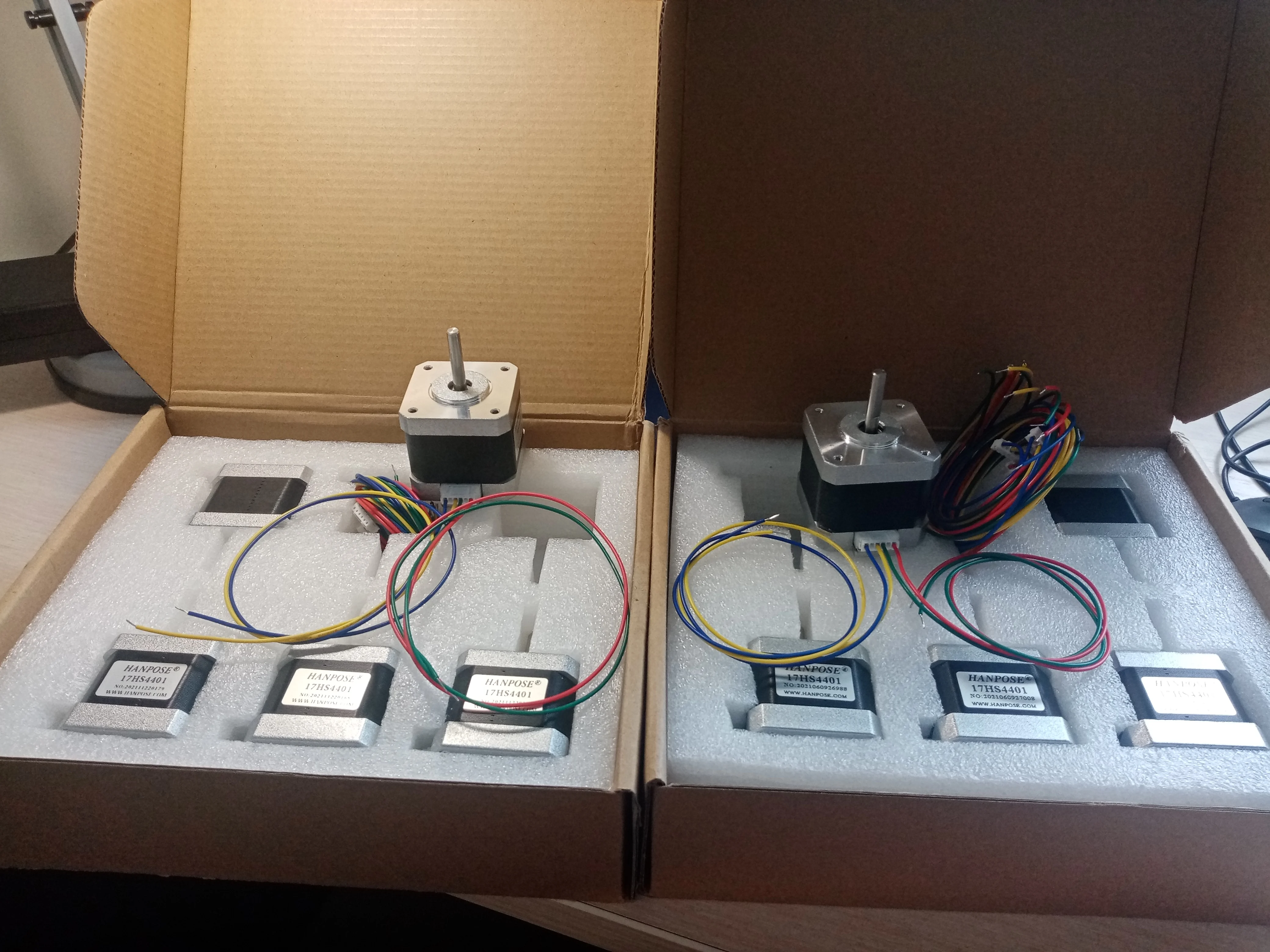 Товар хороший. Подключал через драйвера A4988, после чего экспериментировал через программу. Для хорошего момента двигателя необходимо качественно настроить напряжение на драйвере, иначе двигатель можно свободно остановить рукой, держась за вал. На каждый двигатель был провод. Есть моторы, на которых контакты на одну обмотку идут не последовательно, тут такого нет, на фото где синий и жёлтый провод это одна обмотка, зелёный и красный другая. Заказывал сразу 10 моторов, до Перми дошли за 6 дней.Aleksandrov A. 14 апреля 2022