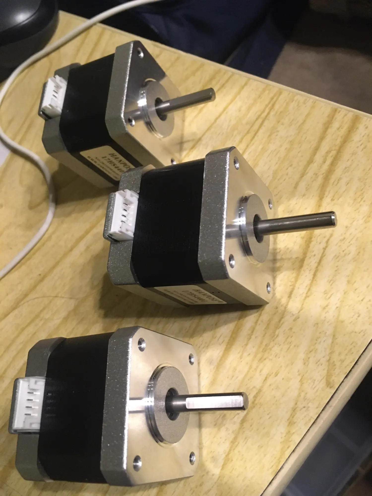 За 1500руб на распродаже 11.11 купил комплект из 3 двигателей. Доставка CDEK +700руб за 3 дня. Габаритные размеры указаны точно, размер штекера 5х15 см. на фото. Упаковка добротная. Сопротивление обмотки на всех двигателях одинаковое 2.0 Ом (в описании указано 1.5 Ом!), обрыва фаз и замыкания нет. Покупалось для самоделки, плата контроллера ещё не пришла. Проверил работу на имеющемся 3D принтере с родной платой (Ender 3 Pro с HR4988 драйверами на v4.2.2 плате) - работают. Рекомендую тут брать