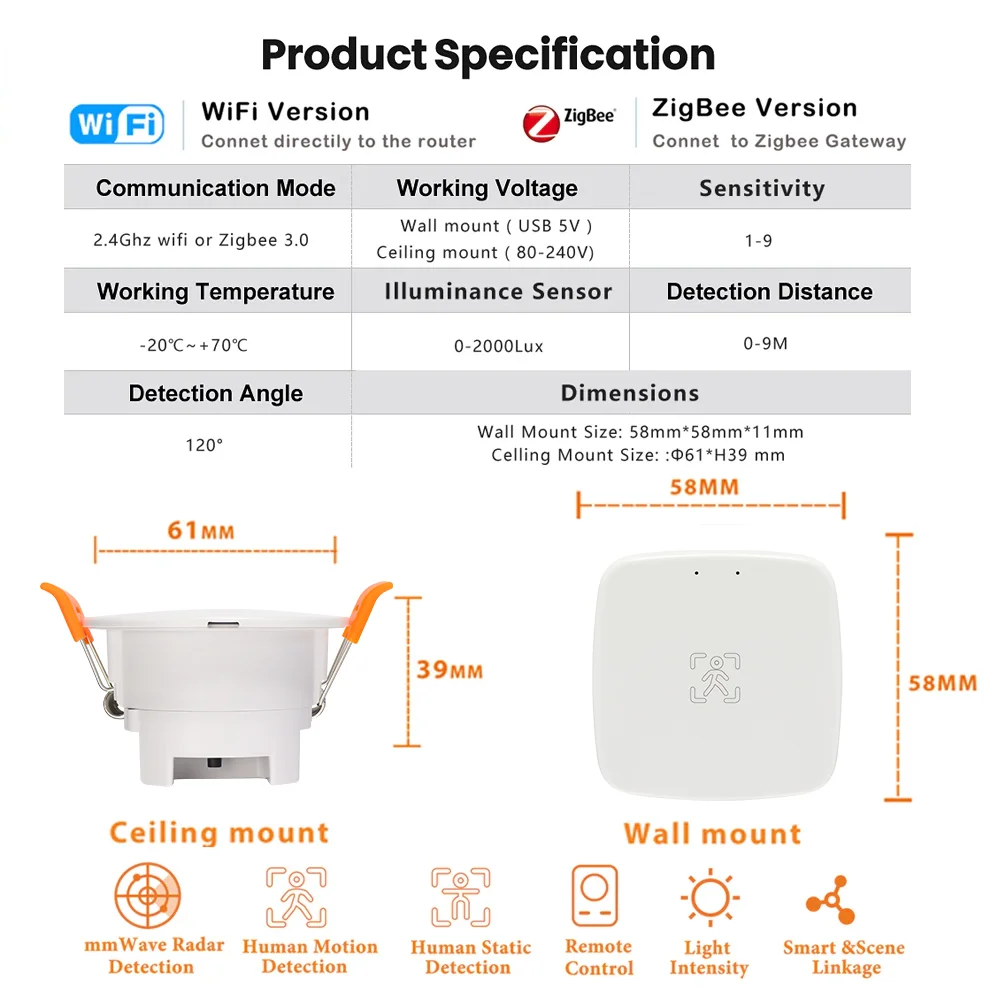 - Feature 3:zigbee human presence sensor