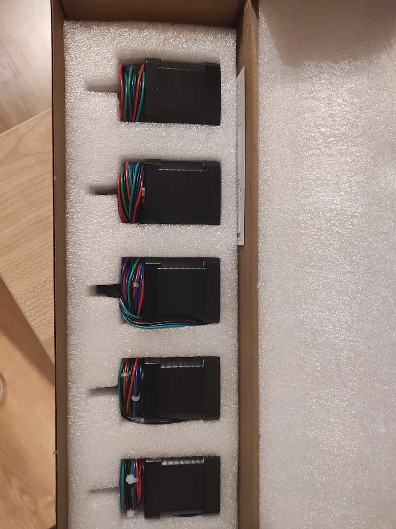 Неплохие моторы, 5 штук по выгодной цене. Быстрая доставка. Длинные провода, но, увы, их придется обрезать и перезакалывать. Моторы шумные, чувствуются шаги и исходит заметная вибрация, возможно работать им надо на бОльших скоростях.