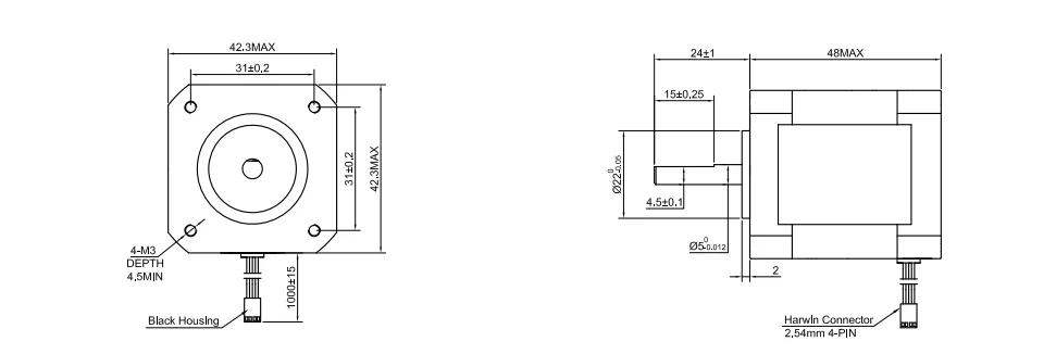 Длина кабеля otor до 1 метра и добавьте 4-контактный разъем Harwin с шагом 0,1 дюйма (2,54 мм) на конце кабеля.. Он идеально подходит для 3D-принтеров, а также приложений с ЧПУ и робототехники.