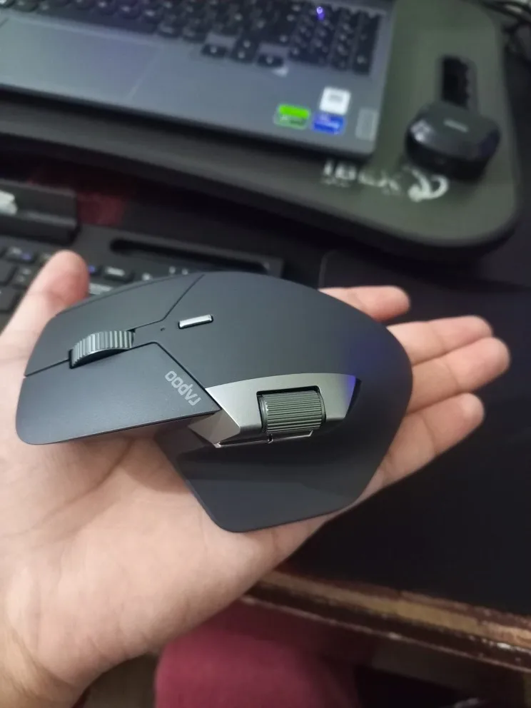 Сама мышка отличная. Я раньше в мышках Rapoo сразу менял микрики на бесшумные, а тут они уже с завода. Эргономика тут самая лучшая из всех Rapoo которые косят под Logitech MX. В комплекте аж два 2,4ГГц передатчика (один внутри мышки, второй отдельно). Боковое колесо беззвучное и плавное, без трещотки, а вот верхнее рабочее колесо зачем-то с трещоткой - это наверно единственный не критичный, но минус. Панелька беспроводной зарядки оказалась бессмысленной, не рекомендую. Она очень мелкая, нужно попадать ею на катушку зарядного, вертикально не поставишь, по сути игрушка и выброшенные деньги. Я рекомендую просто магнитный коннектор на постоянку к мышке подключить и просто одним движением причпокивать кабель - у меня так на всех других мышках сделано.