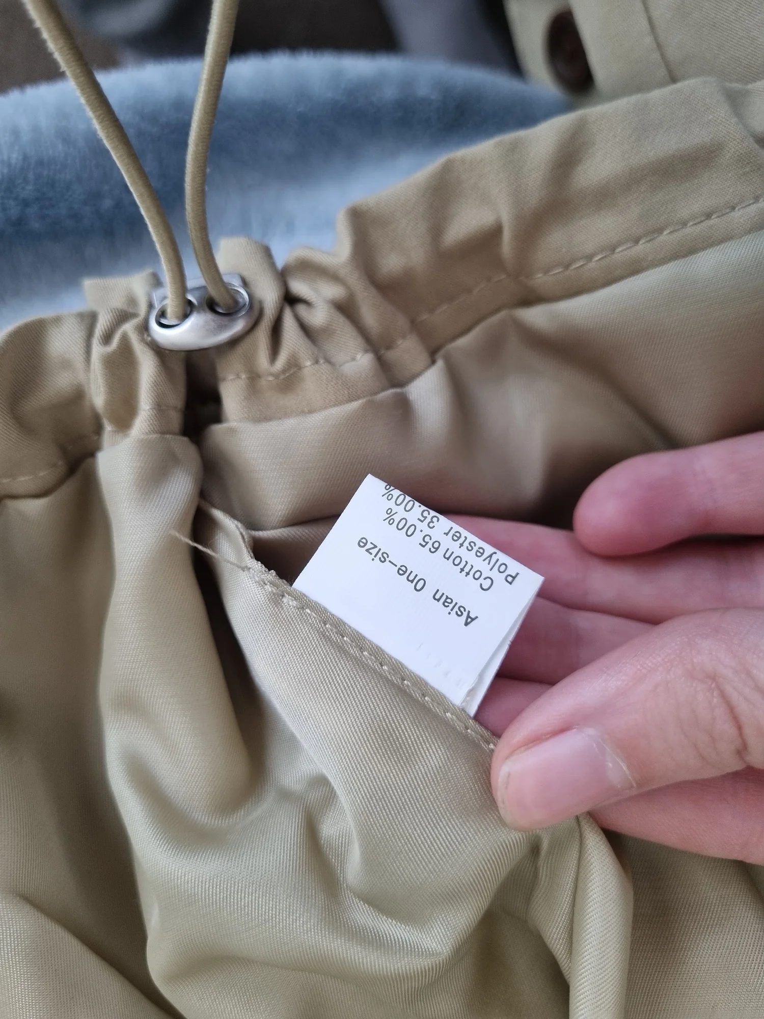 Плотная ткань, хорошее качество На мой рост 170 чуть ниже талии по длине, очень объёмная, прям сильный оверсайз, по низу есть резинки хлопок 65 % полиэстер 35 % Из минусов - цвет не такой светло-бежевый, скорее светло-оливковый, уходит больше в тёплый