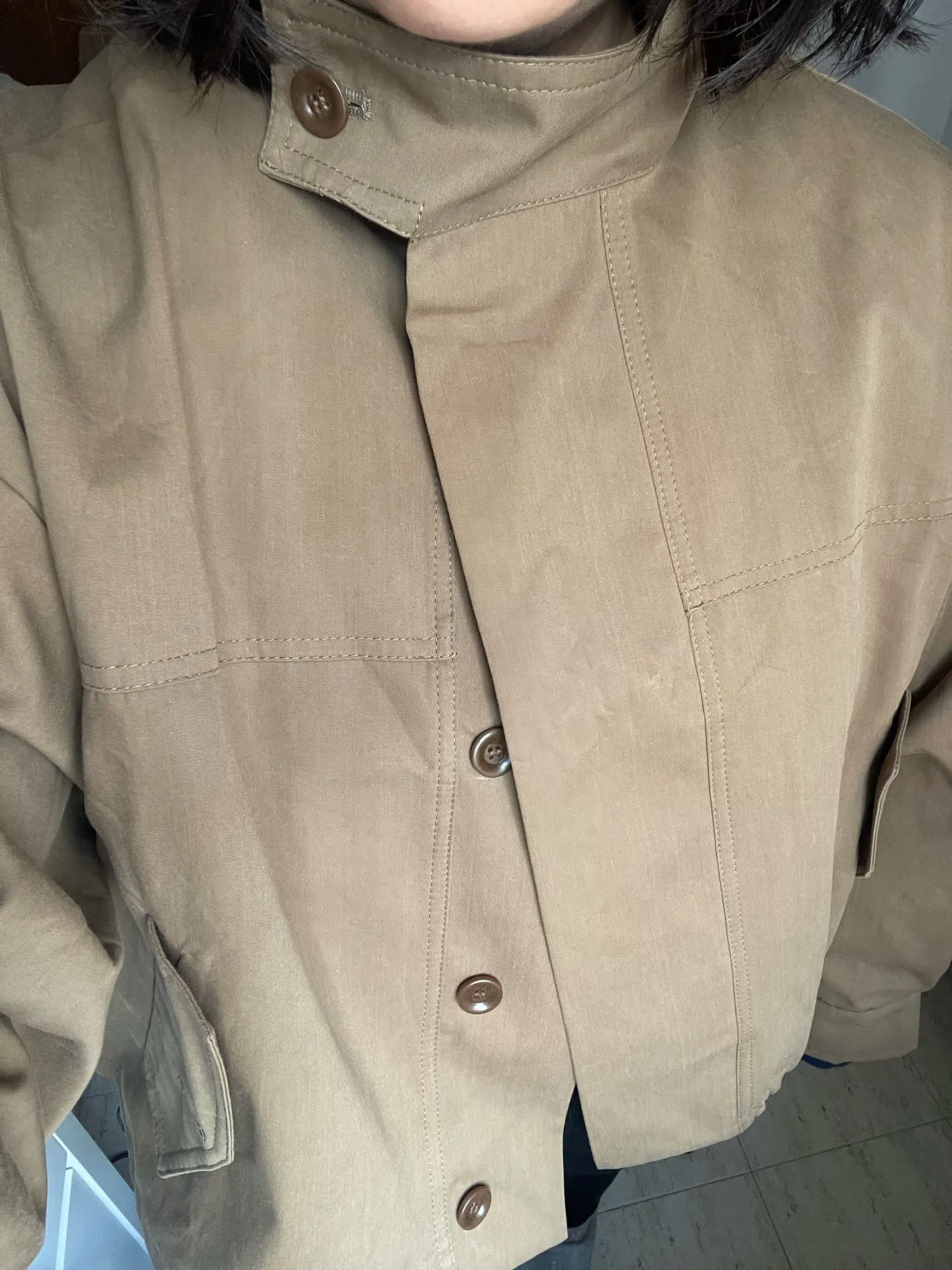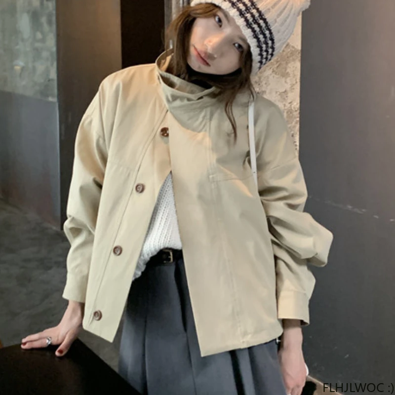 Korea Short Outerwear Woman Casual Loose Lazy Chic Long Sleeve Cotton Blends...