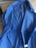 прекрасная рубашка, очень приятный материал, такой же как на некоторых моих рубашках юникло. цвет насыщенный синий. и даже на мой 48 размер села как оверсайз. качество фото не передает, доставка дней 10