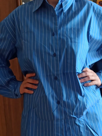 Пришла рубашка в хорошем качестве. Упакована в один ЗИП пакет. Никакой бумагой не проложено. В составе смесь из хлопка, нейлона и спандекса. Ткань приятная. На европейский размер М, рост 161, вес 58-60 село уверенным оверсайзем. Рукава мне длинные. Рубашка очень длинная, заправлять в брюки не очень уж удобно. Цвет очень симпатичный. Спасибо.Alona L. 2 августа 2023