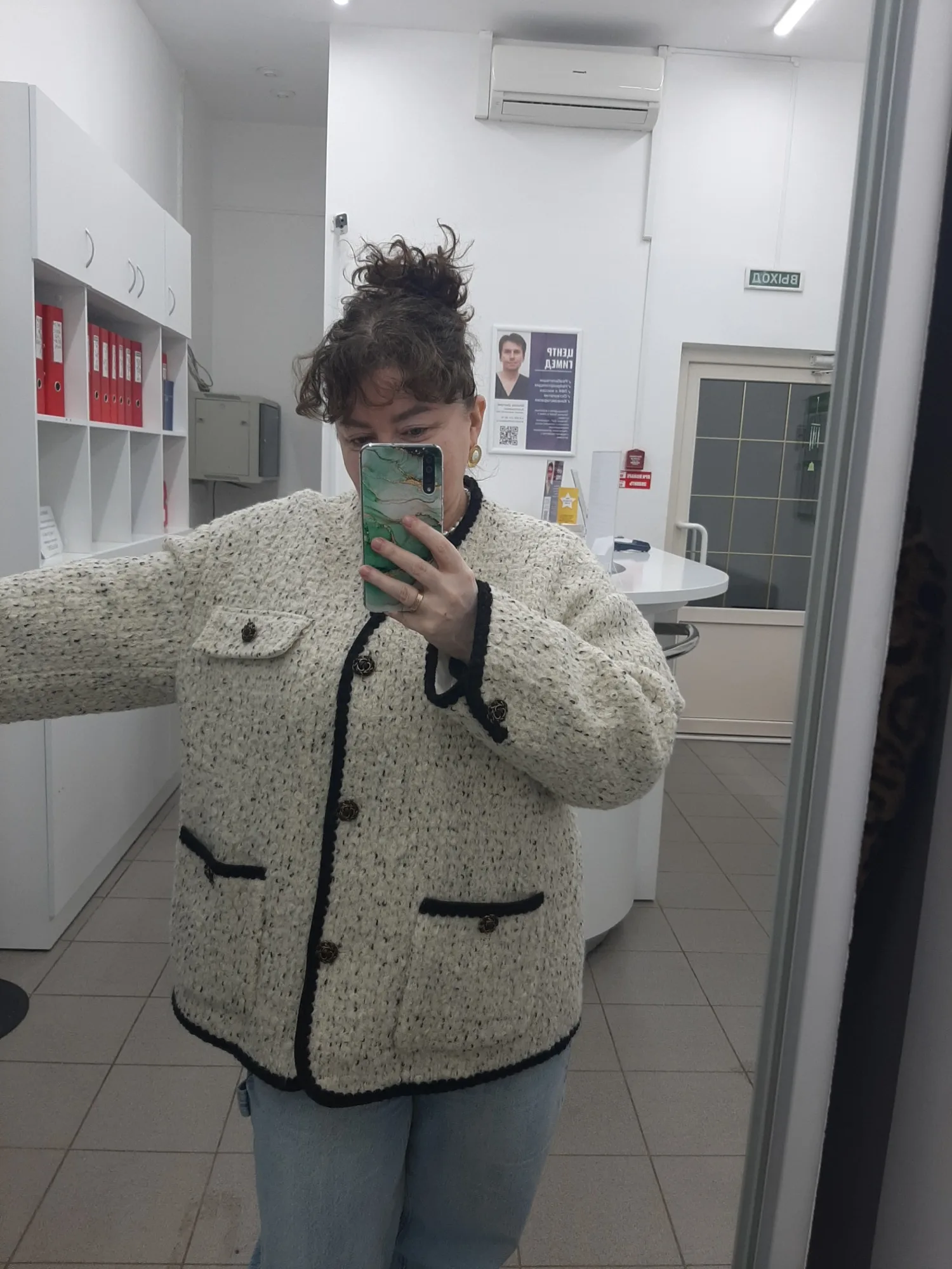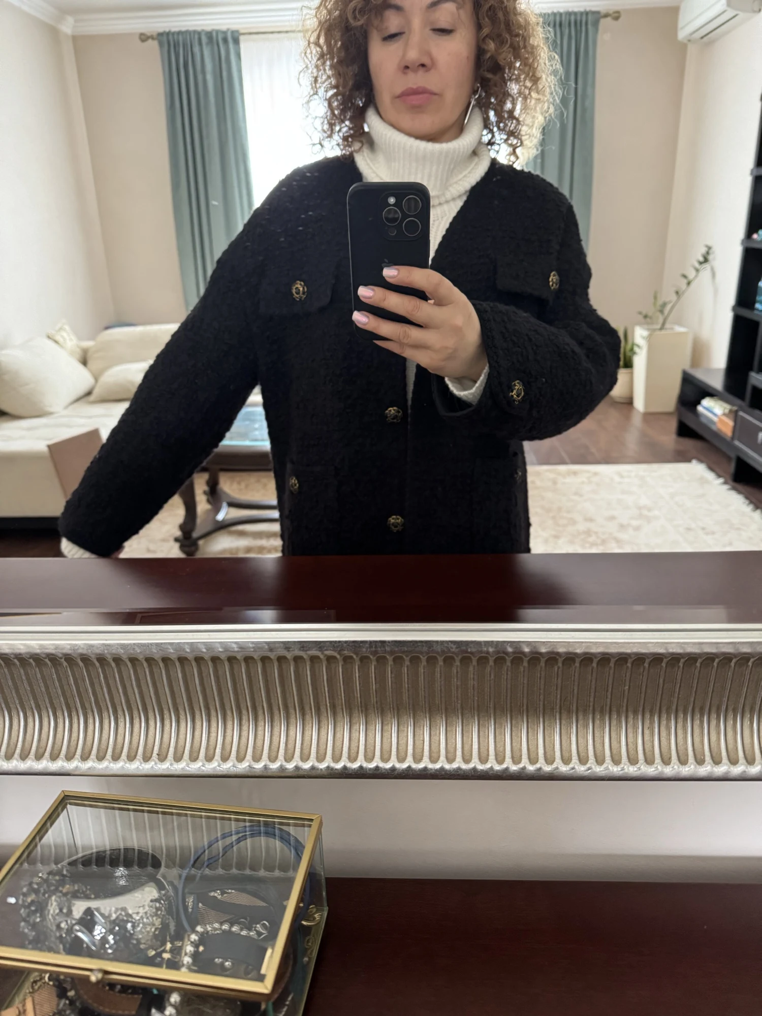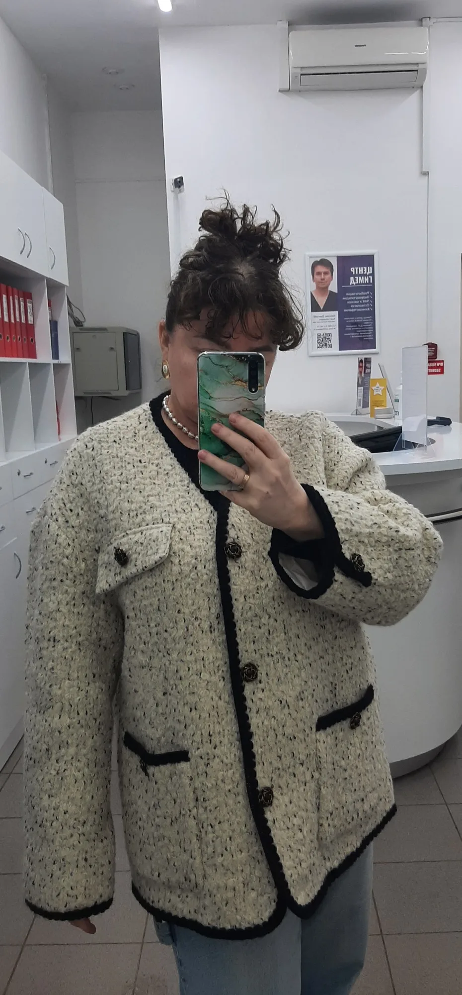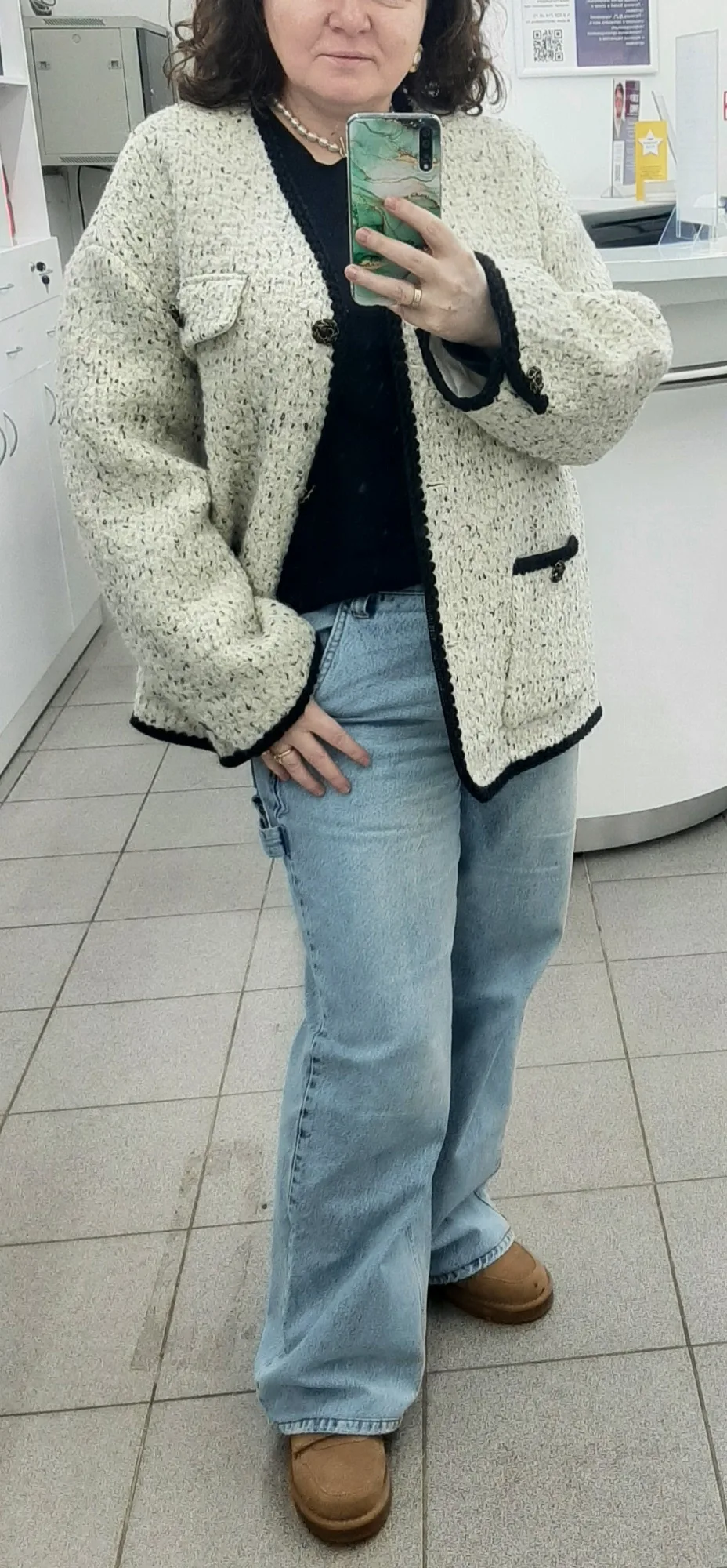 Очень классное пальто - жакет. Тёплое,тяжелое ,качественно сшито. Хорошая фурнитура и подклад. Послушала одну известную блогершу и заказала на свои 90-70-95 XL, чтобы сидел свободно. В результате получился не оверсайз, а оверсайзище. Но, в целом, всё равно неплохо.