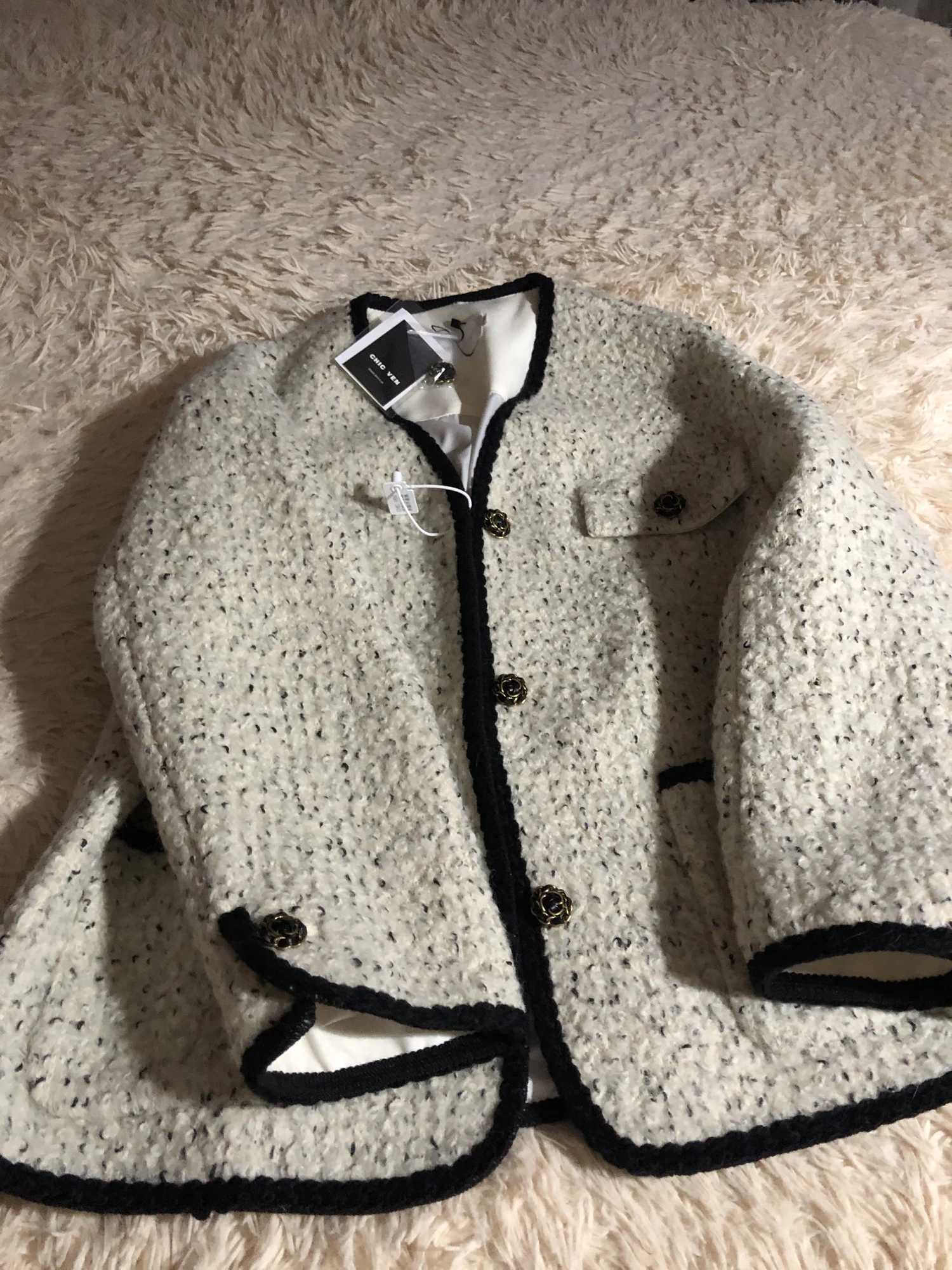 Очень крутой педжак или жакет, как угодно назови, хуже он не станет!😁 Качество пошива на высшем уровне!!!💯 Подкладка по всему изделию, бирочки пришиты очень аккуратно, пуговица отличного качества не дешовка и пришиты очень аккуратно и надёжно. Короче, абсолютно точно, что шился педж на хорошей фабрике профессионалами. Взяла размер XXL на свои параметры: рост 162, ог 107, от 88, об 103. На фото видно, что рукава длинноваты, да и в целом можно было взять XL. Единственное, что огорчило, это бирочки на китайском🤗, но шерсть обнозначно есть😉👍
