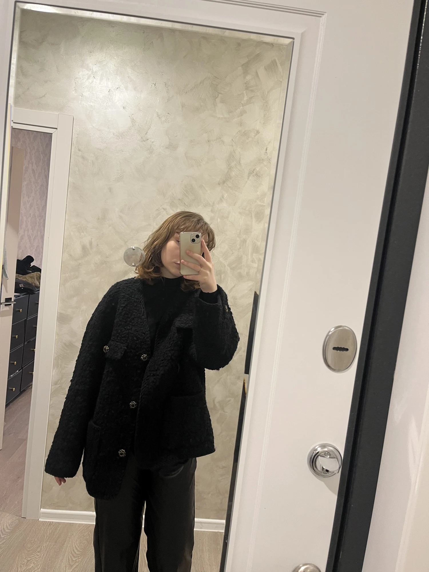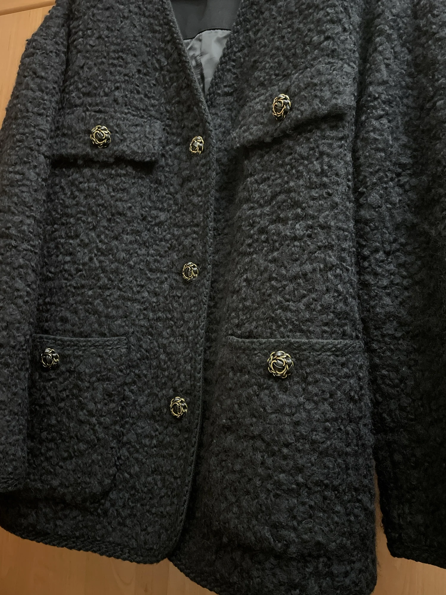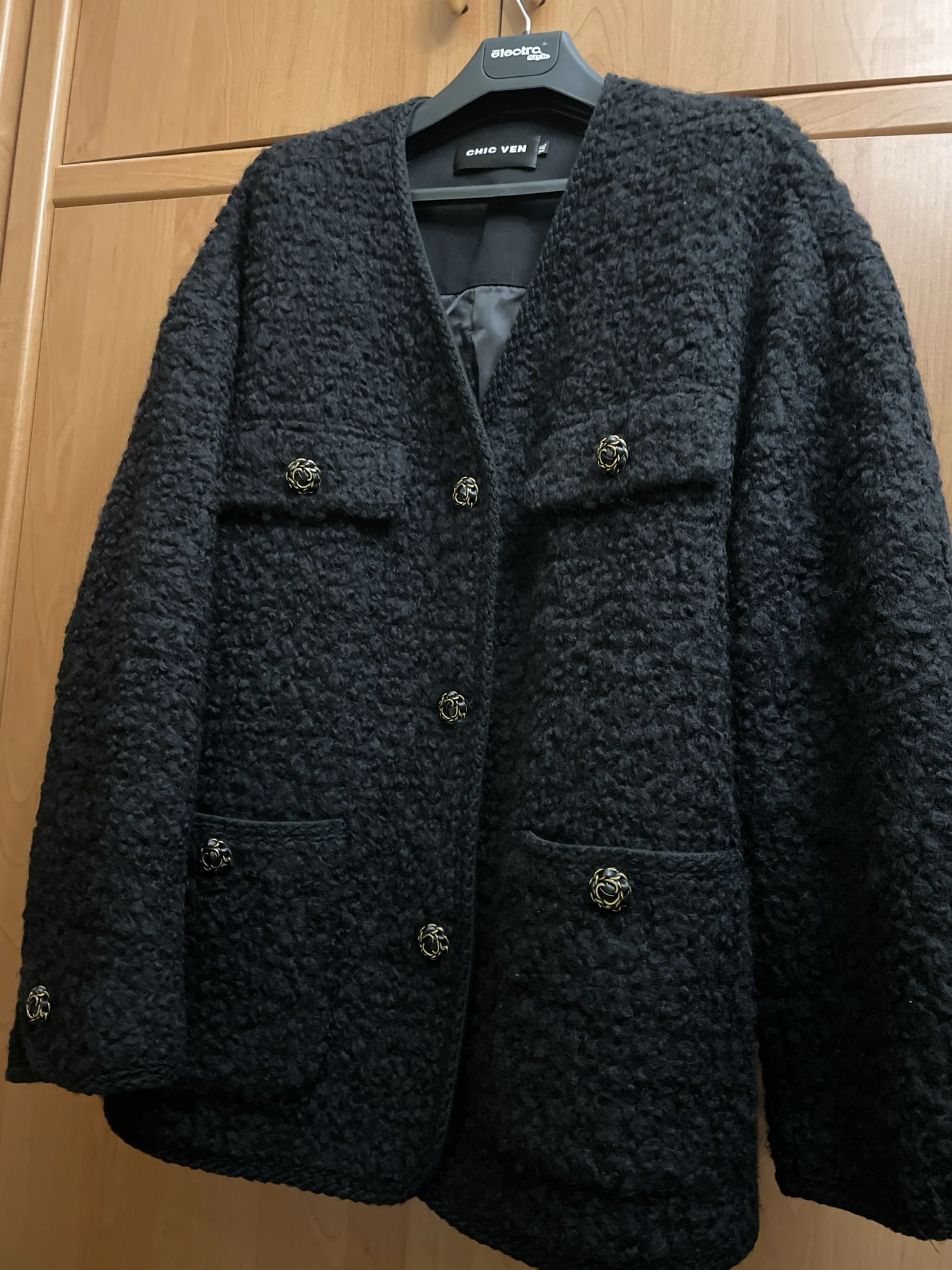 Этот жакет моя любовь))). Его можно носить вместо драпового пальто. Теплый, мягкий, с красивой фурнитурой и отделкой. Хорошо смотрится, как с классической одеждой, так и с кэжел.РЕКОМЕНДУЮ!!!! Цвет насыщенный черный.ae802097 u. 13 декабря 2023
