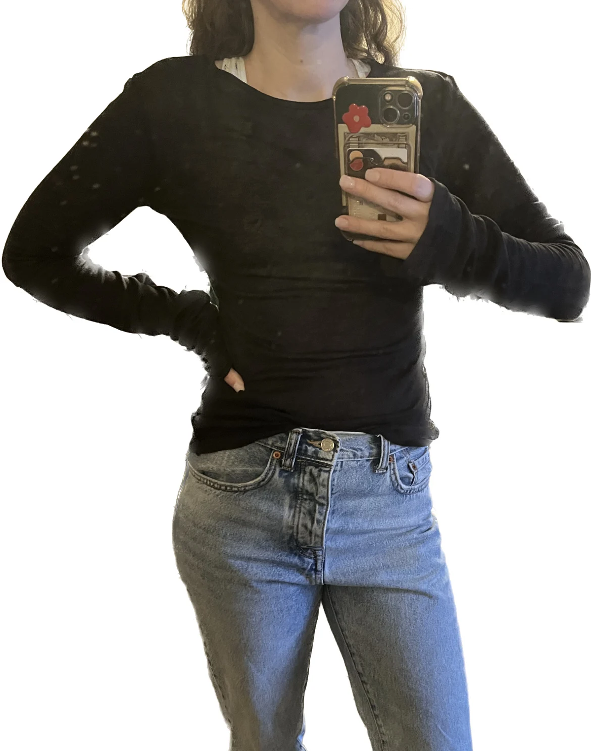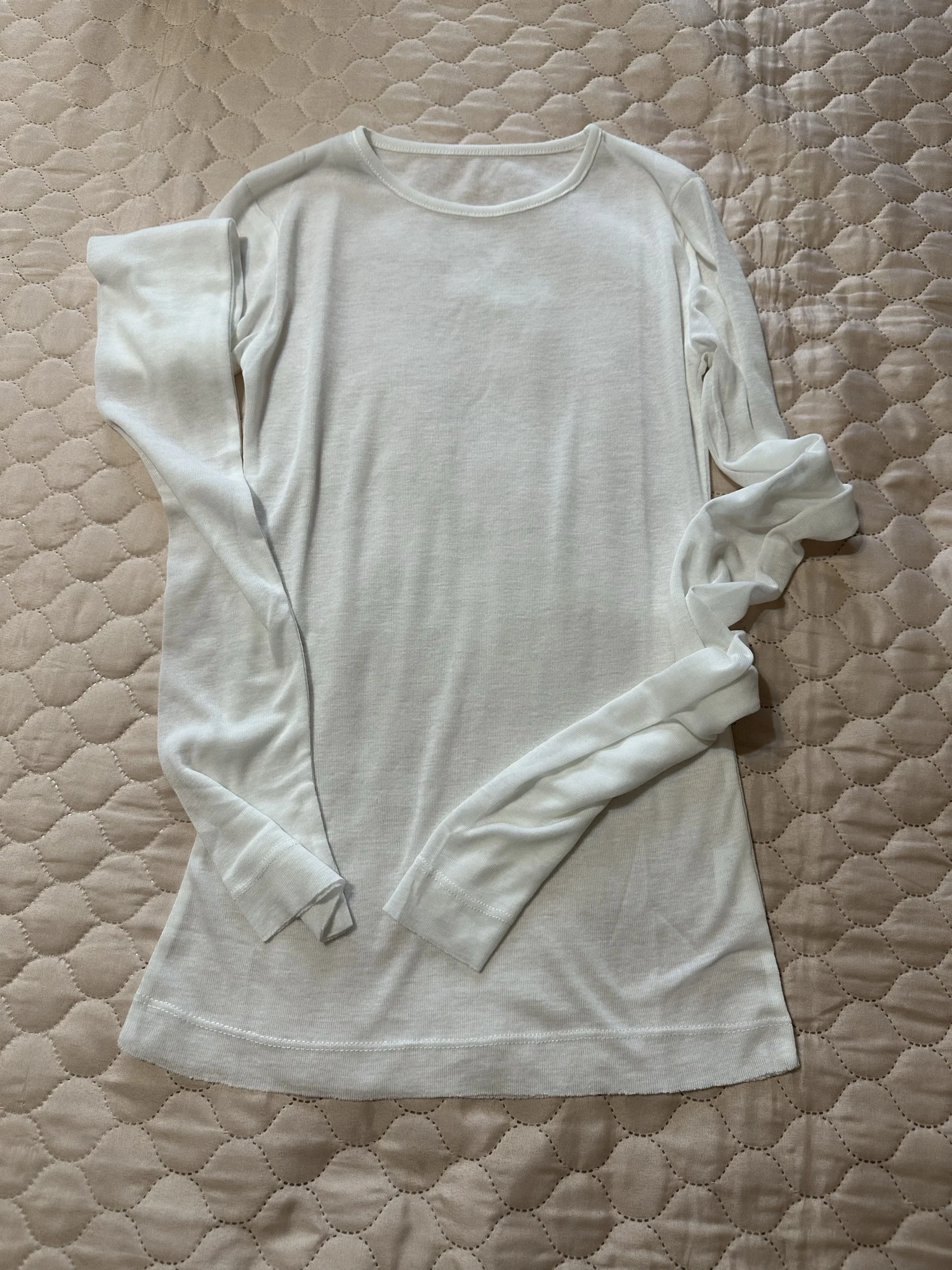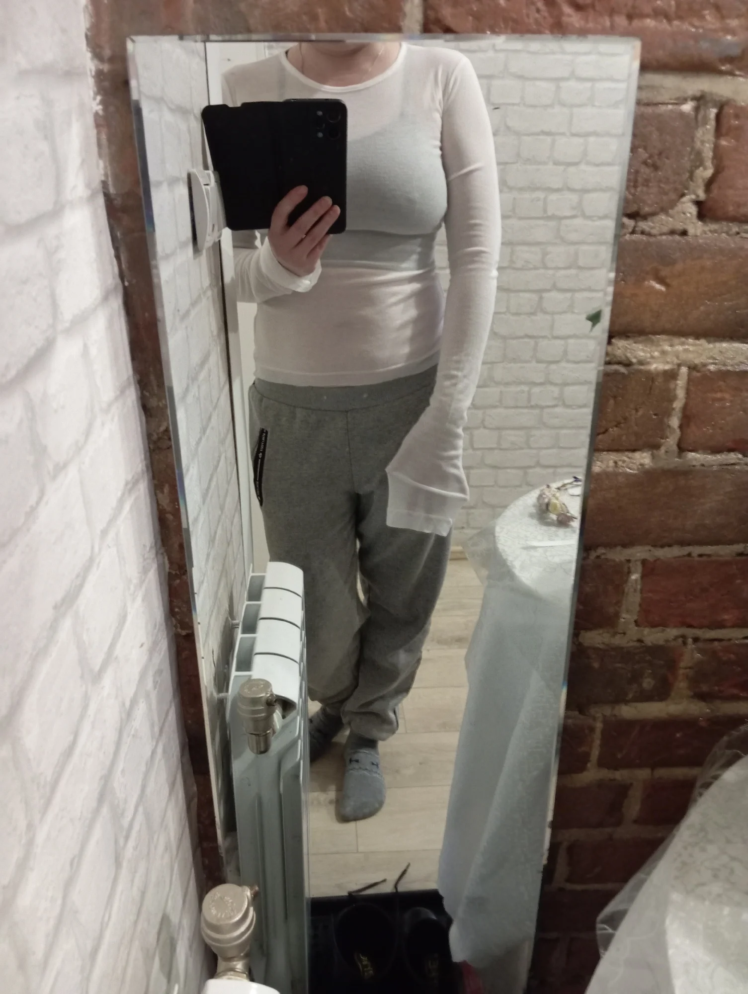 Отличный лонгслив, заказывала вместе с белым, чтобы создавать многослойные образы. Лонгслив полупрозрачный, пошит качественно. Очень длинные рукава, что позволяет сделать красивую драпировку. Размер единый, хорошо тянется. На 92-77-94 сел впритык, думаю, что на большие параметры лонгслив не подойдет.Ilona Z. 24 января 2025