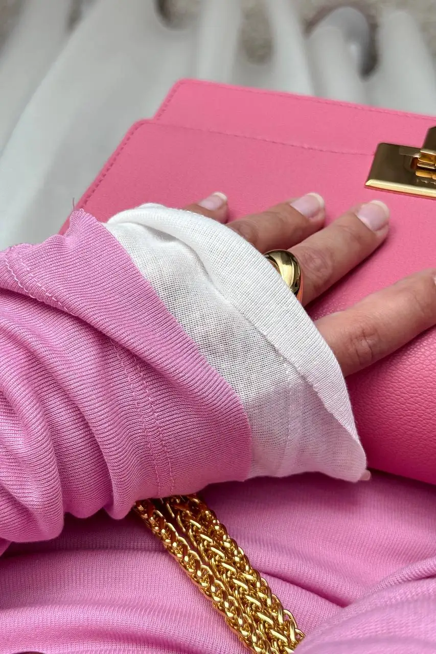 Мои параметры 85/68/88 см, грудь 75C и рост 160 см. Материал лонгслива тонкий, полупрозрачный, светит. К телу очень комфортный, приятный. Рукава очень сильно облегают в зоне плеча и предплечья. Рукава удлиненные расклешенные (как у Пьеро) - в них вся фишка, потому что они красиво собираются у кисти руки. Также можно зафиксировать длину браслетом. Многослойность и прозрачность - это тренды, поэтому я надеваю розовый лонг поверх белого и получаю стильный и необычный образ, дополняя его аксессуарами.