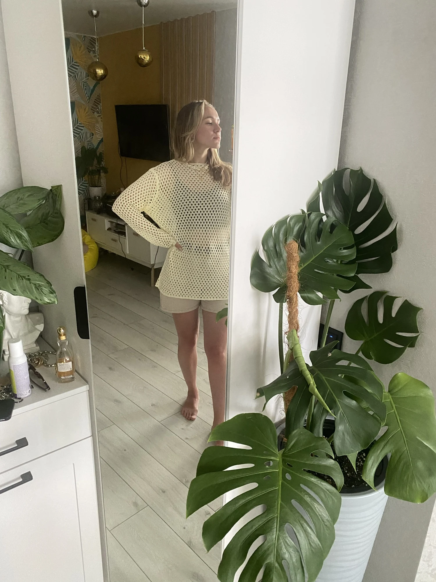 кофта отличная, взяла размер L, потому что хотела подлиннее и посвободнее, на рост 167 - просто супер❤️ вчера получила, сегодня уже надела первый раз с шортами и топом - выглядит классно, брала изначально для отпуска, чтобы накидывать вечером на купальник) чувствую, буду ходить в ней все лето, вязка хорошая, однозначно рекомендую!