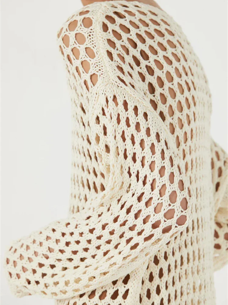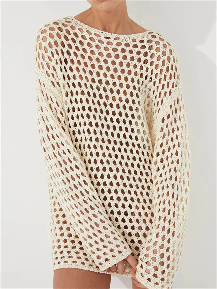 Tossy Knit Hollow Out Cover up Mini Dress For Women See-Through Loose Beach...