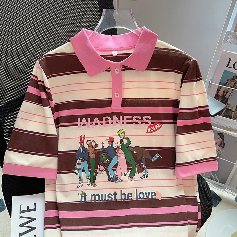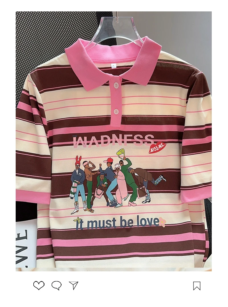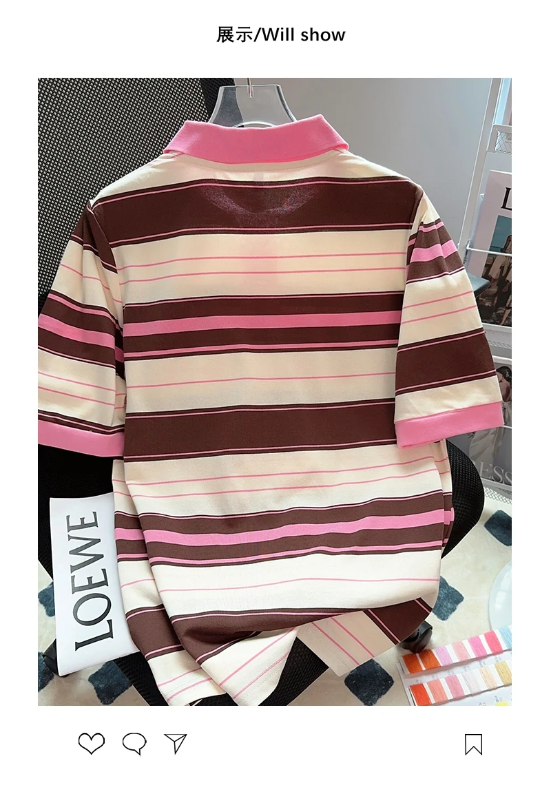 Short Sleeved T-shirt Women's Summer 2023 Trendy Stripe Polo Top Large Women's...