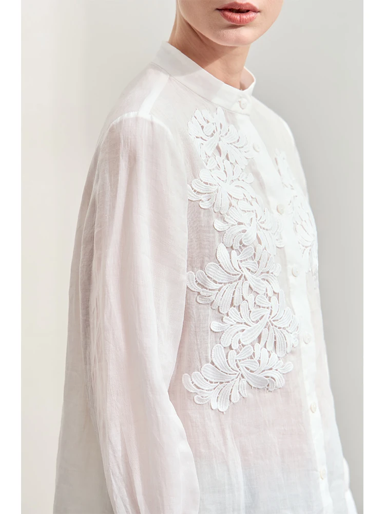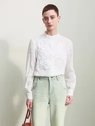Amii Minimalism Women Shirts 2024 Autumn New Chinese Stand Collar Lace Decal...