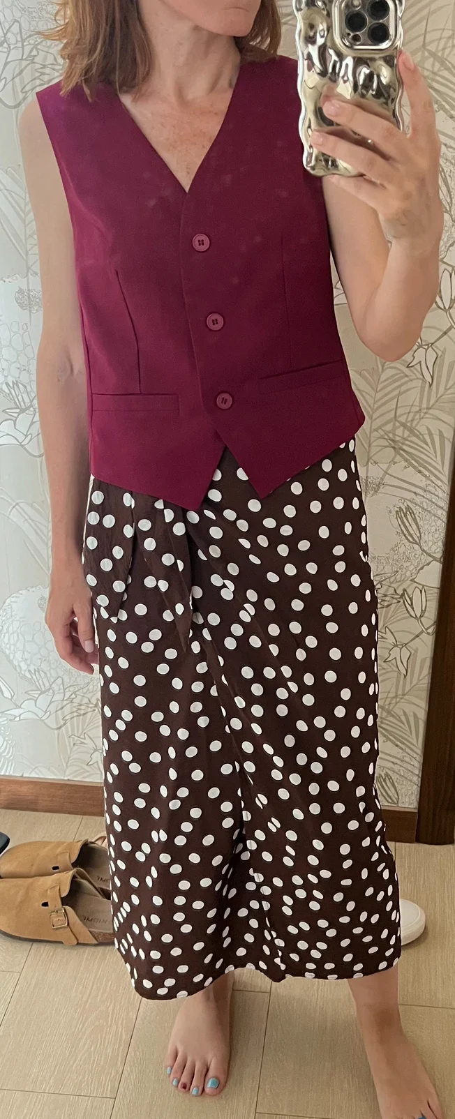Больше находок у меня на каналеtg.Отличный жилет за свою стоимость. Состав действительно отличный: 30% лен, 70% хлопок. На рост 158, параметры 92-64-88 взяла размер S. Сел свободно. Можно носить поверх футболок.