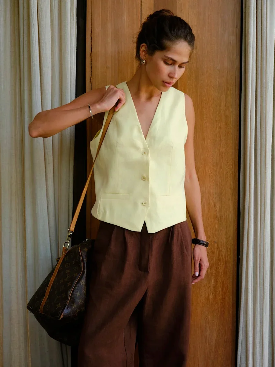 Bornladies Summer Basic V-neck Tanks Vest Women Linen Cotton Fashionable...