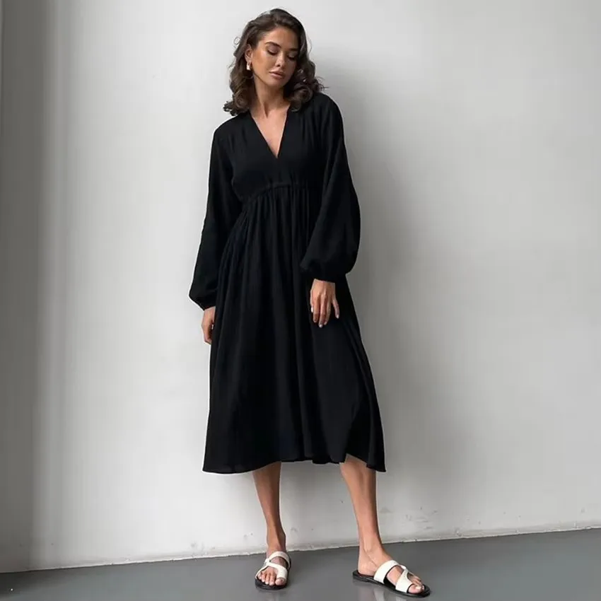 Элегантное хлопковое платье с длинными рукавами и V-образным вырезом с высокой талией вечернее платье на день рождения женское платье белое платье миди женское платье