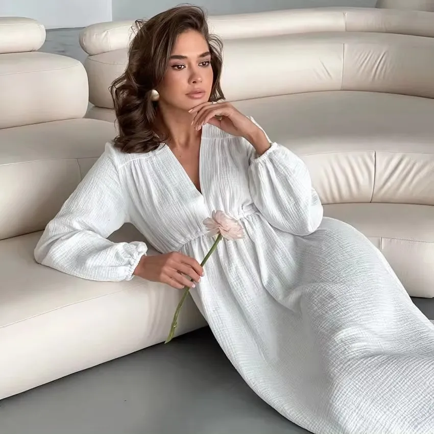 Muslin 100% Cotton Gauze Elegant And Pretty Women'S Dresses Long Sleeve Party...