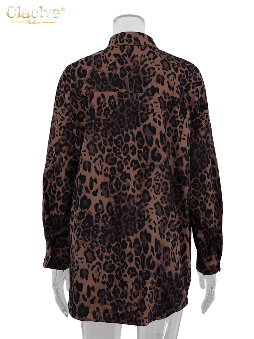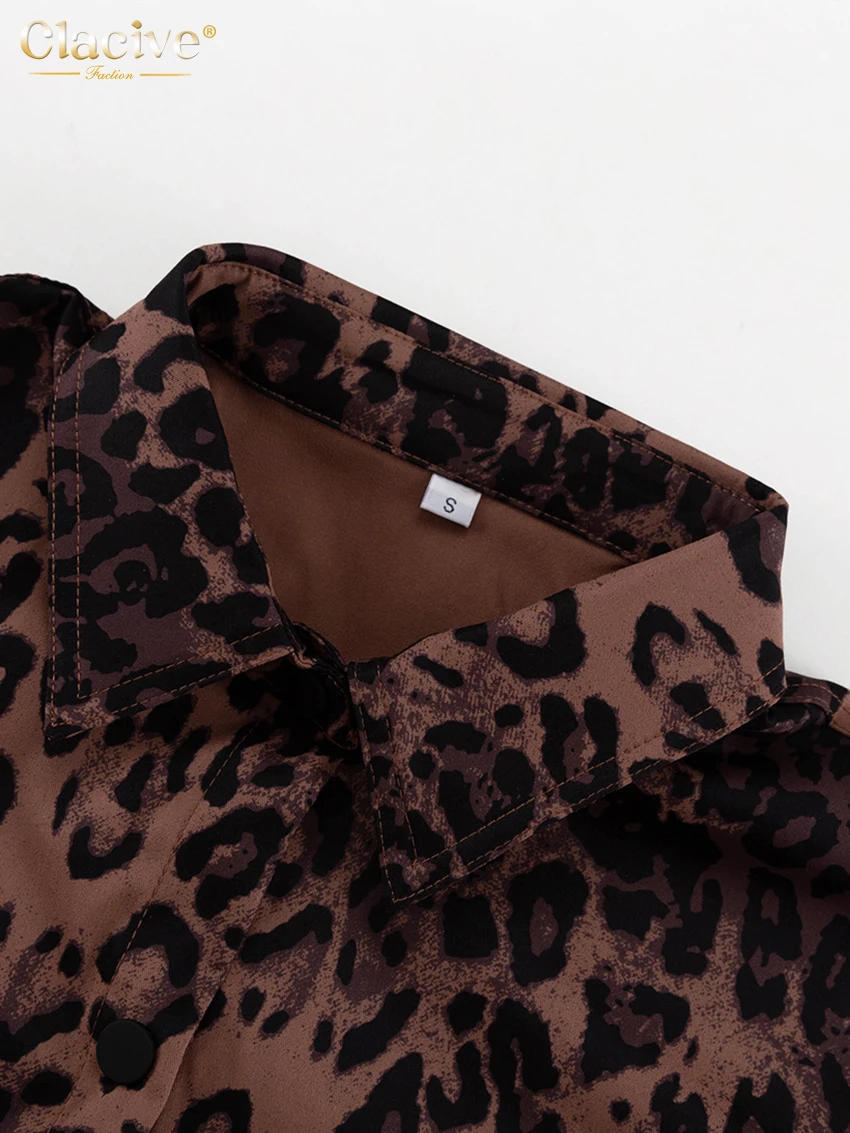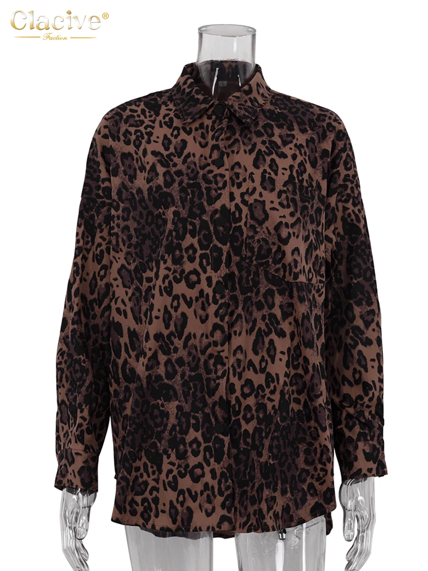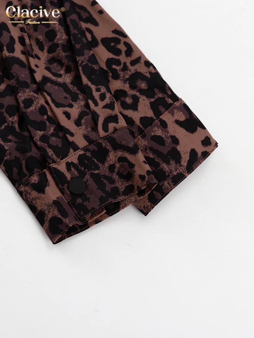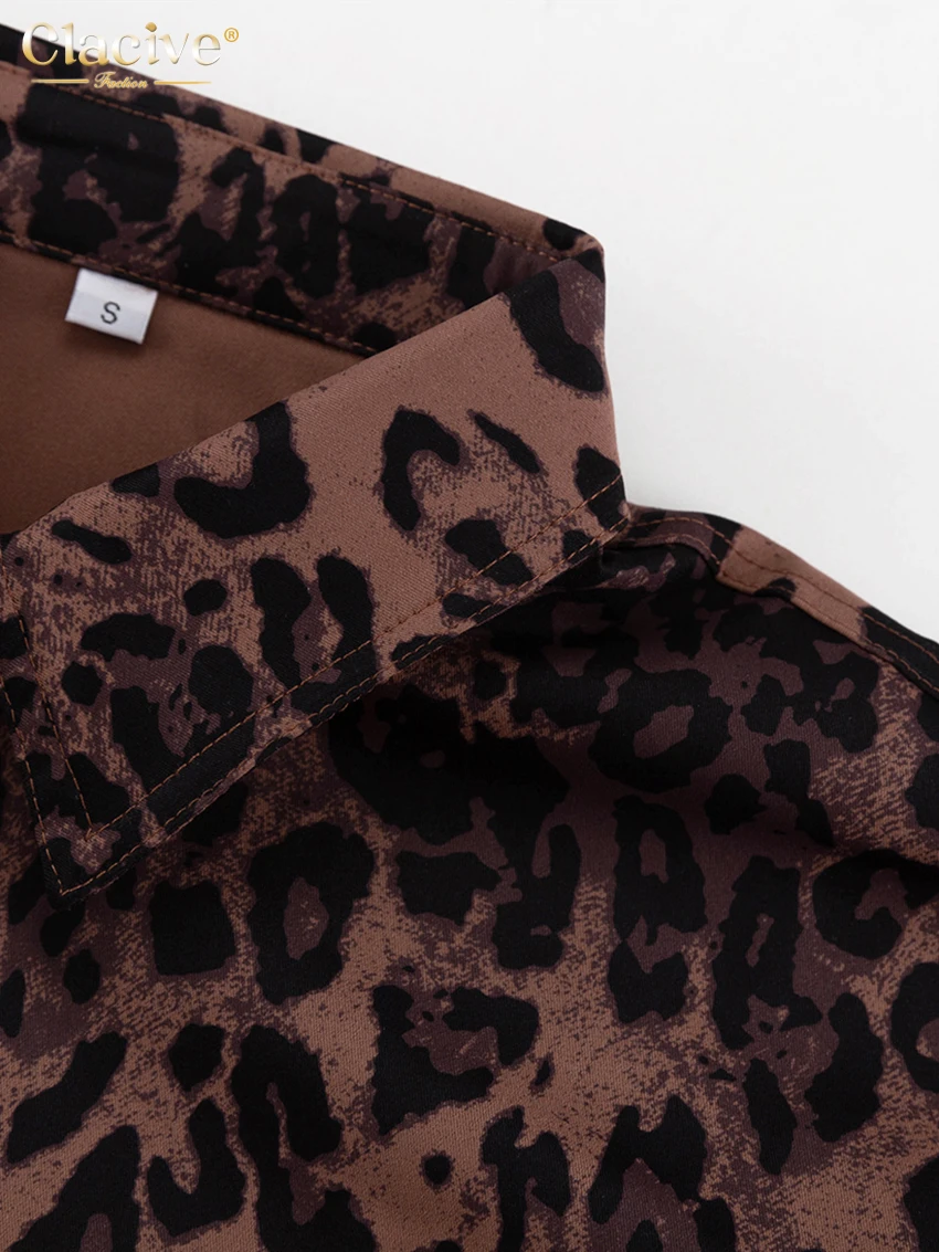 Clacive Fashion Leopard Print Women's Shirt 2024 Elegant Lapel Long Sleeve...