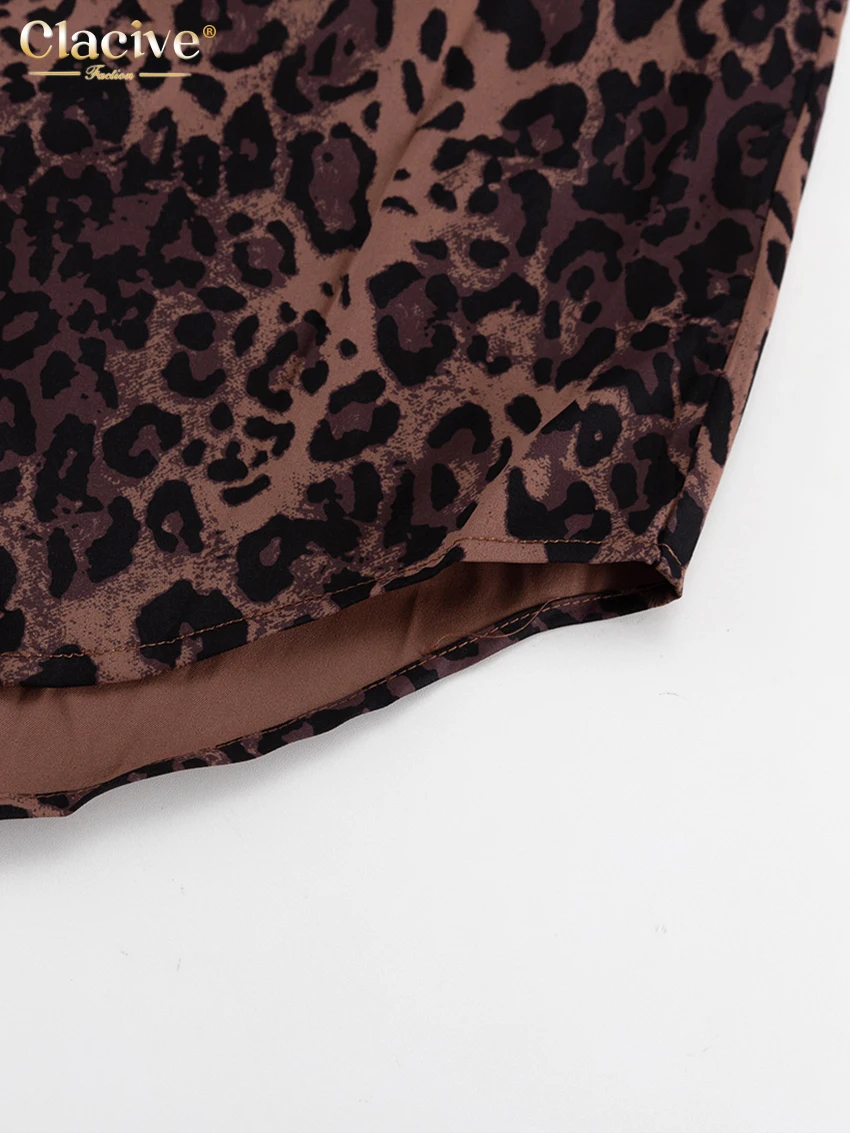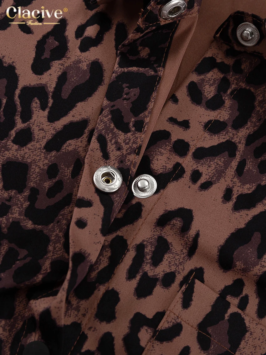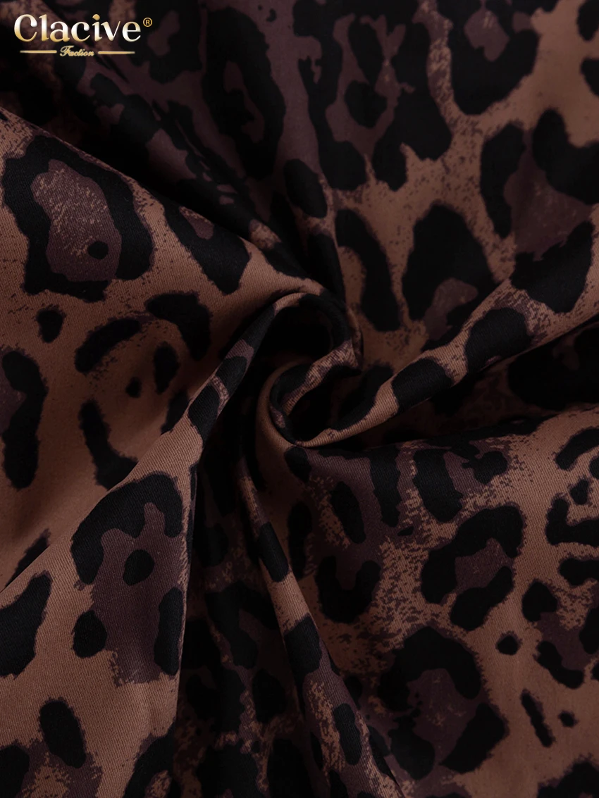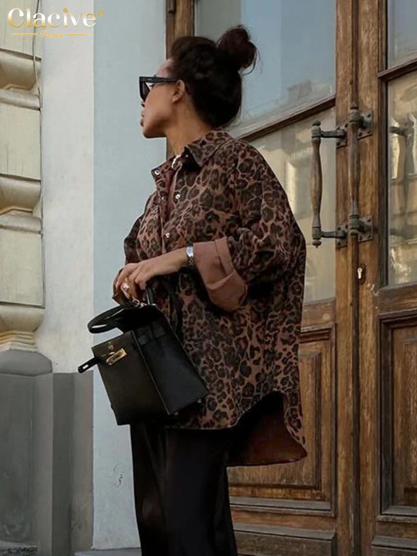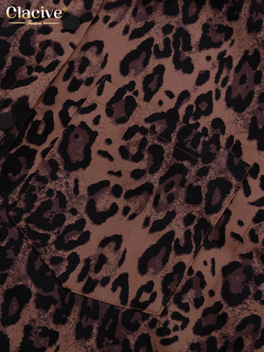 Clacive Fashion Leopard Print Women's Shirt 2024 Elegant Lapel Long Sleeve...
