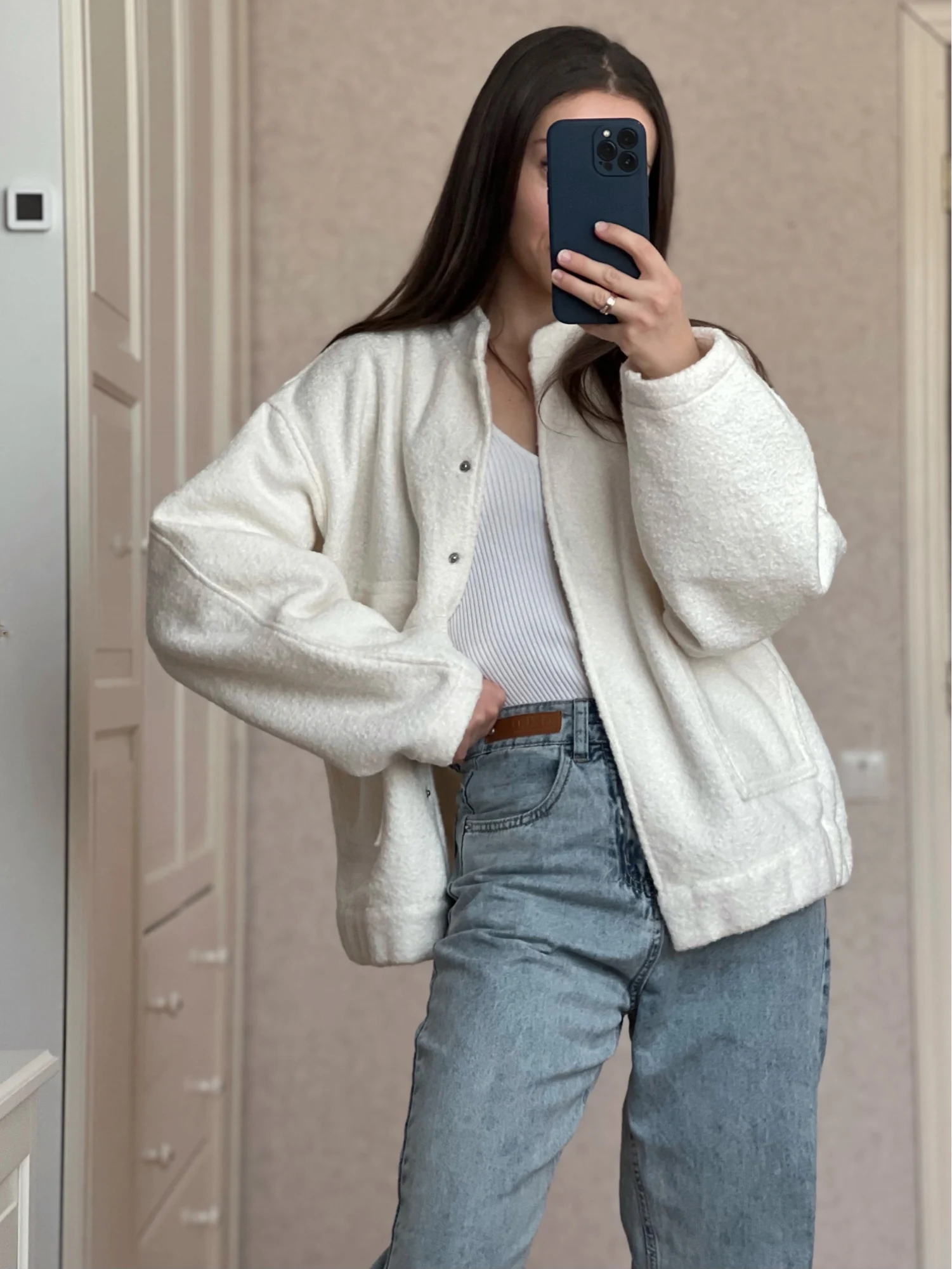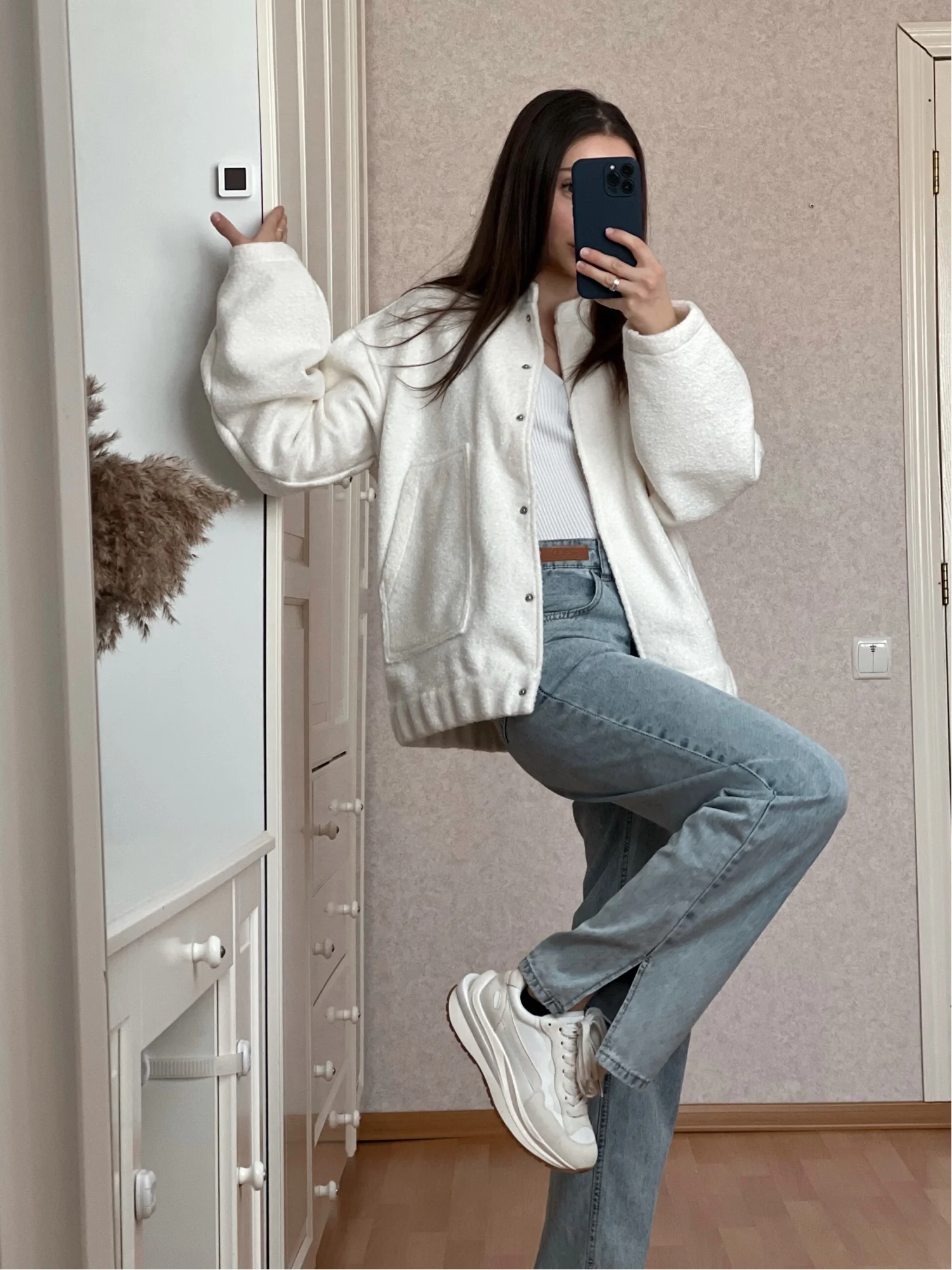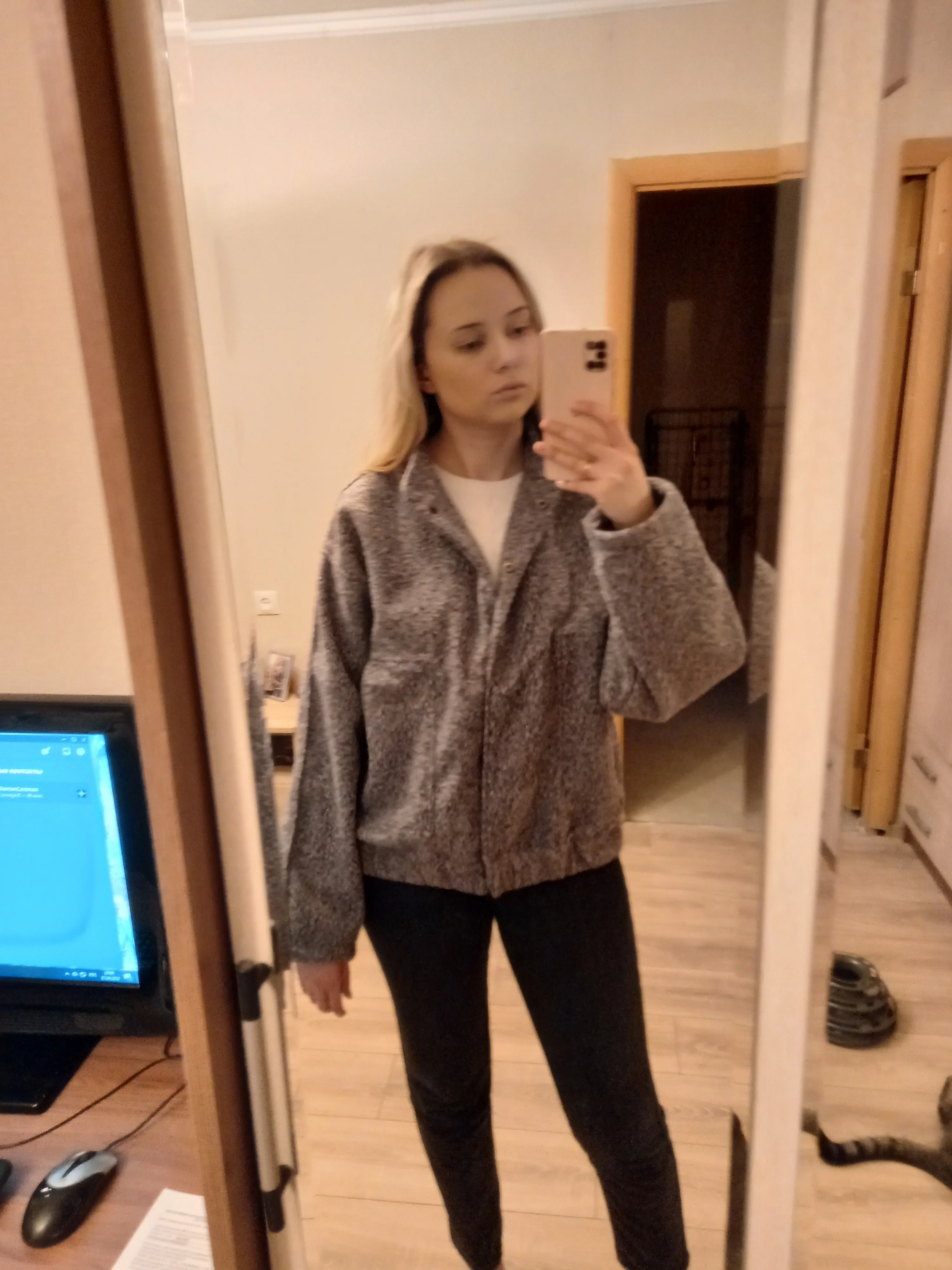 Очень крутой бомбер как в Za. Отличное качество, бомбер без подклада, но достаточно тёплый. Приятный материал, доставка быстрая) Очень рекомендую присмотреться на весну! Думаю буду часто носить На пои параметры 85-64-89 рост 165 - подошёл размер S, сидит оверсайз. У меня в бежевом цвете
