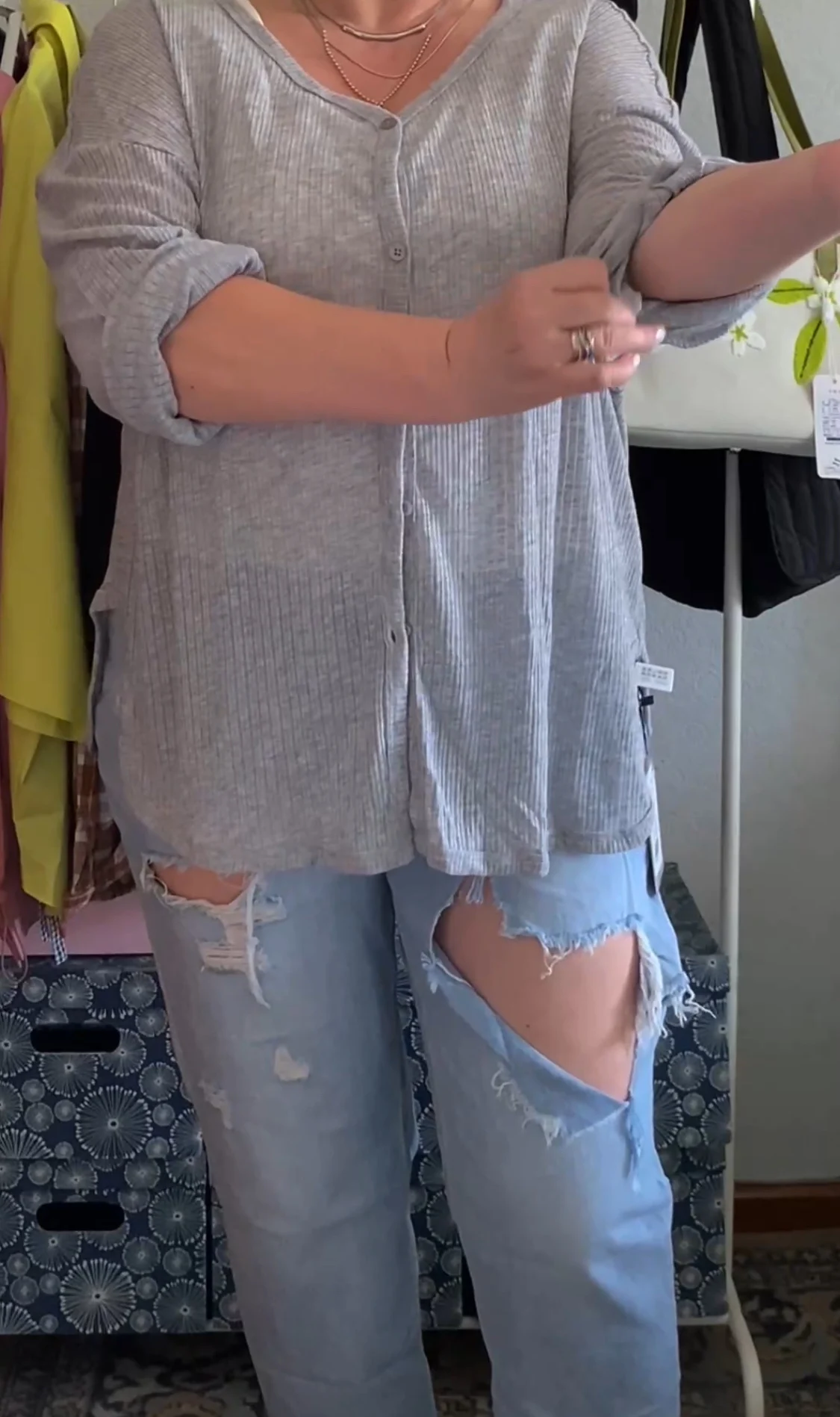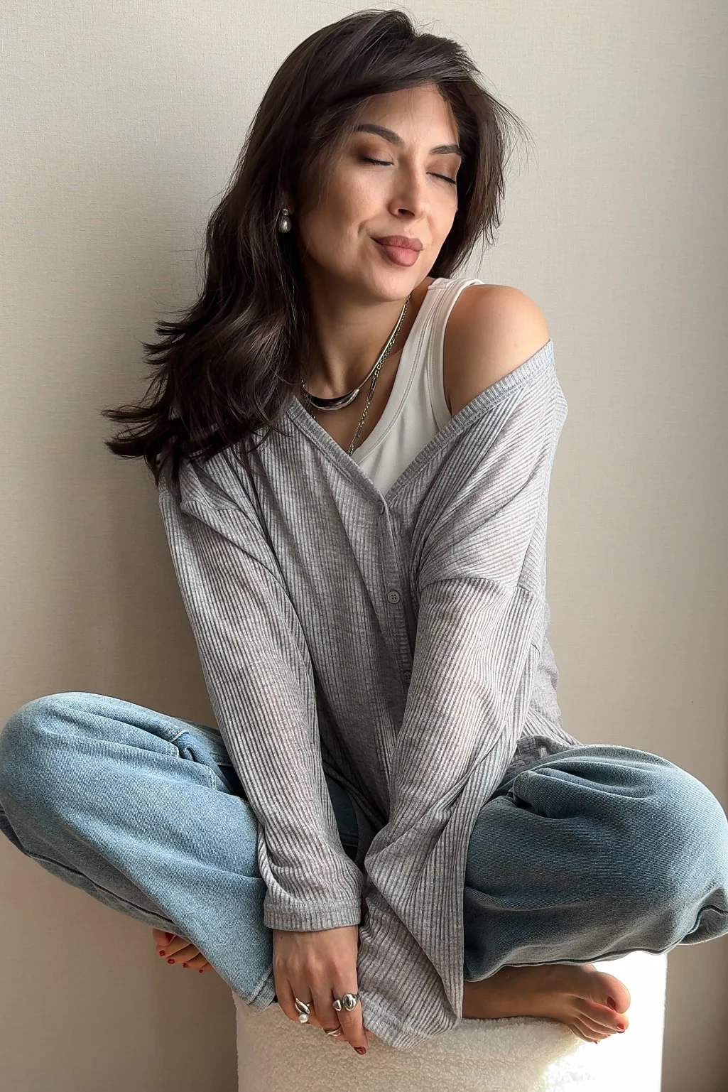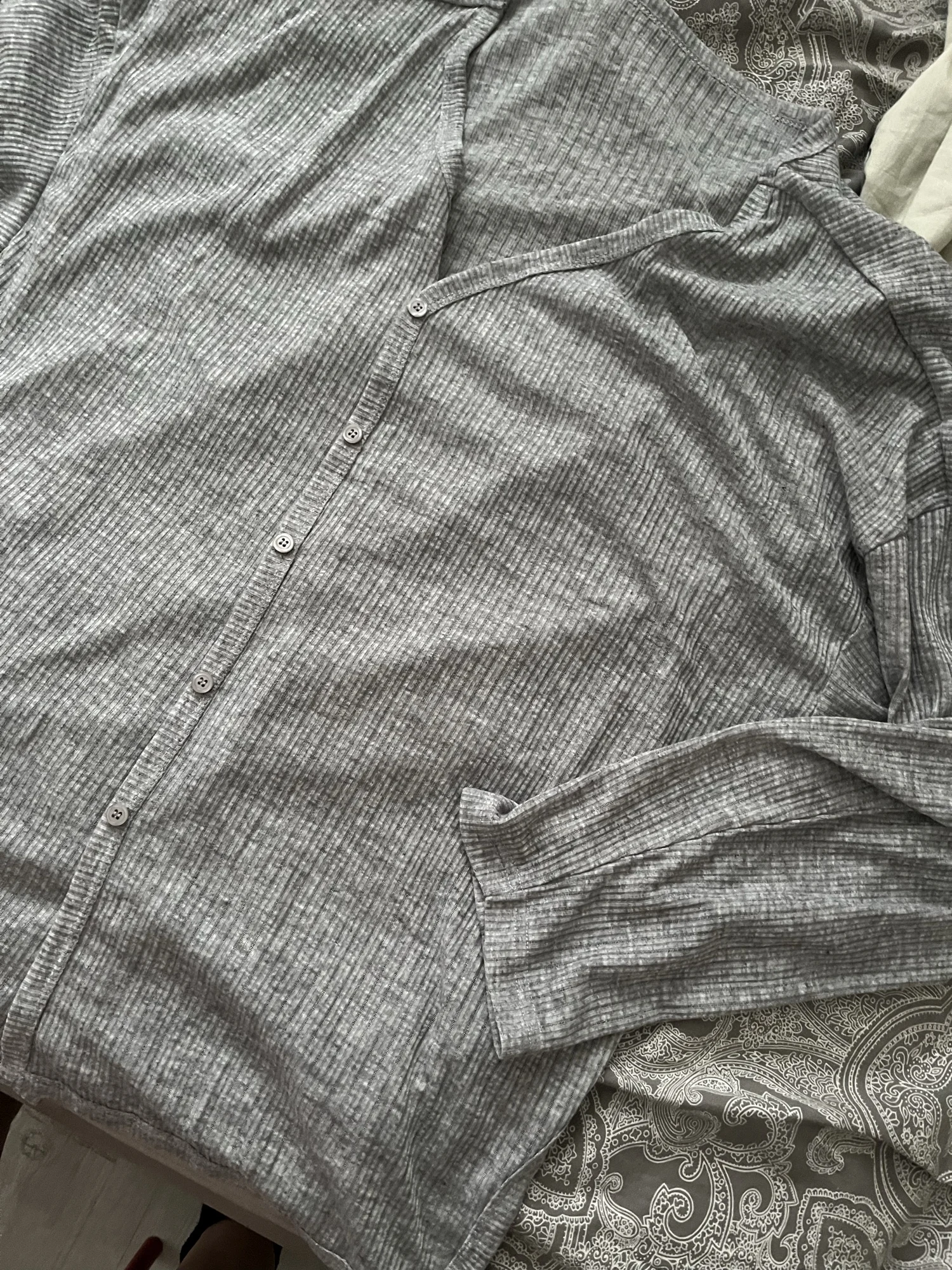 На своем канале показала этот легкий кардиган еще и в видео-примерке! Мои параметры 88/66/88 см, грудь 75С и рост 160 см. Долго изучала отзывы, прежде чем определиться с размером, и не прогадала, что взяла себе S-ку. Подойдет и на бОльшие параметры. Состав: 85% полиэстер, 15% вискоза. Материал в тонкую полоску, тактильно безумно нежный, невероятно приятный! Очень легкий, тонкий и мягкий! Полиэстер здесь высокого качества - даже не нужно сравнивать его с неприятным тактильно и к телу, дешевым материалом! Кардиган застегивается на пуговицы в тон основного материала (есть запасная). С пуговичками можно «играться», расстегивая их сверху, снизу или полностью. Свободная посадка, хорошая длина спереди и у рукавов. Сбоку имеются разрезы. Качество прекрасное, как всегда у этого бренда! Это такая уютная вещь... Настолько, что хочется ходить в ней и дома! Я обожаю такую одежду, особенно в качестве второго слоя на лето! На вид простой кардиган, но это восторг!