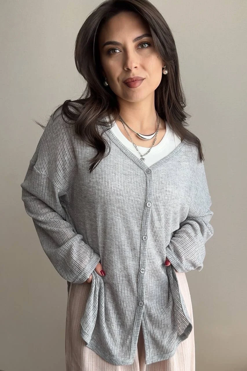 Женский кардиган с V-образным вырезом, длинным рукавом