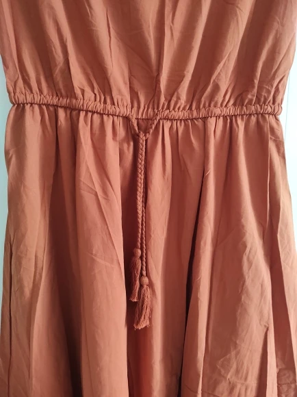 Платье отличное! Качество замечательное: и ткань и пошив. На материале не с экономили, юбка объемная. При росте 170 талия на месте и длина отличная. На параметры 88-71-100 взяла L, сидит как на модели, нигде не даёт, в груди самую малость большевато, но этого не видно. Можно было и М взять, т.к. для ниша ОБ не важен. Замеры платья: ПОГ 49, ПОТ 36. Основная ткань хлопок, есть пришитый подъюбник из синтетики. Реальный цвет на последнем фото с кисточками.3322 u. 22 августа 2022