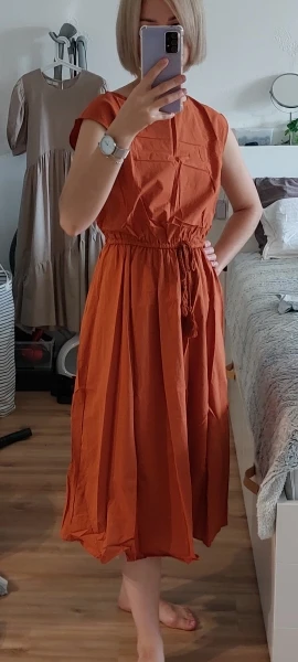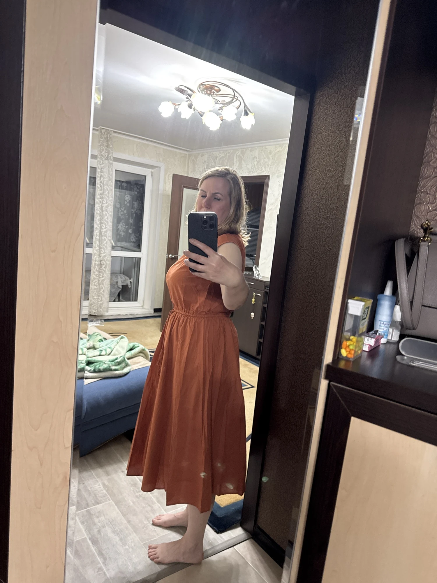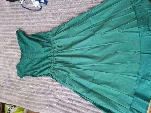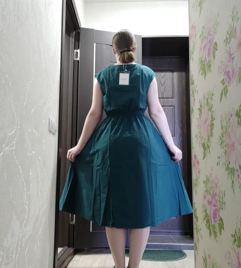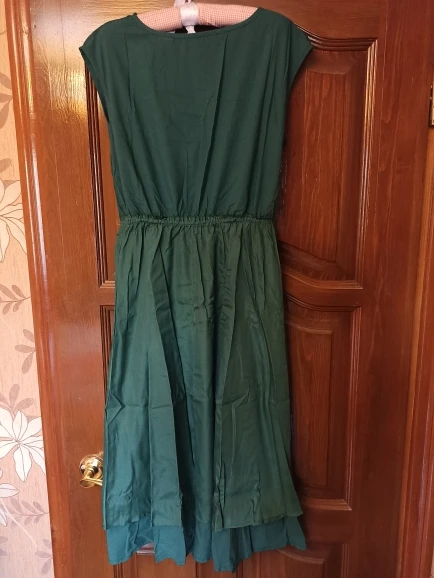 Дуже якісна пошита сукня, кожна стрічка. на розмір 48-50, можна було взяти на розмір менше. Але це дуже зручно сидить. На зріст 168 довге. Сукня дійсно пошита із котону, дуже м'якого, не парить влітку, але підклад під спідницею синтетичний, спідниця пишна. Колір трохи відрізняється від фото, на фото здається ізумрудним, насправді темний бутилочно-зелений. Рекомендую, дуже якісна річ.Aleksandra Y. 6 июня 2023