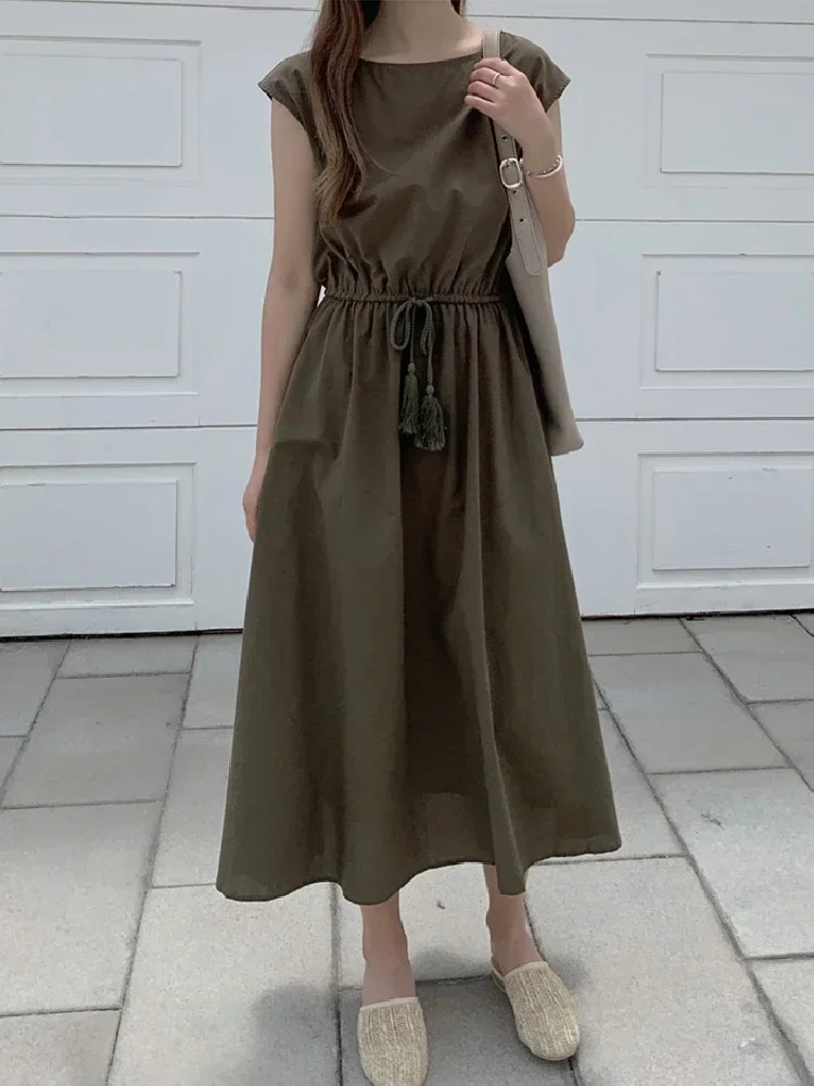 Платьем очень довольна! Пришло за 10 дней. Упаковано хорошо. Цвет как на фото. Запаха нет. Торчащих ниток нет. На талии резинка, которая завязывается, карманов нет. Ткань приятная, но сильно мнётся. Есть подкладка под юбкой, пришита она от резинки на талии.