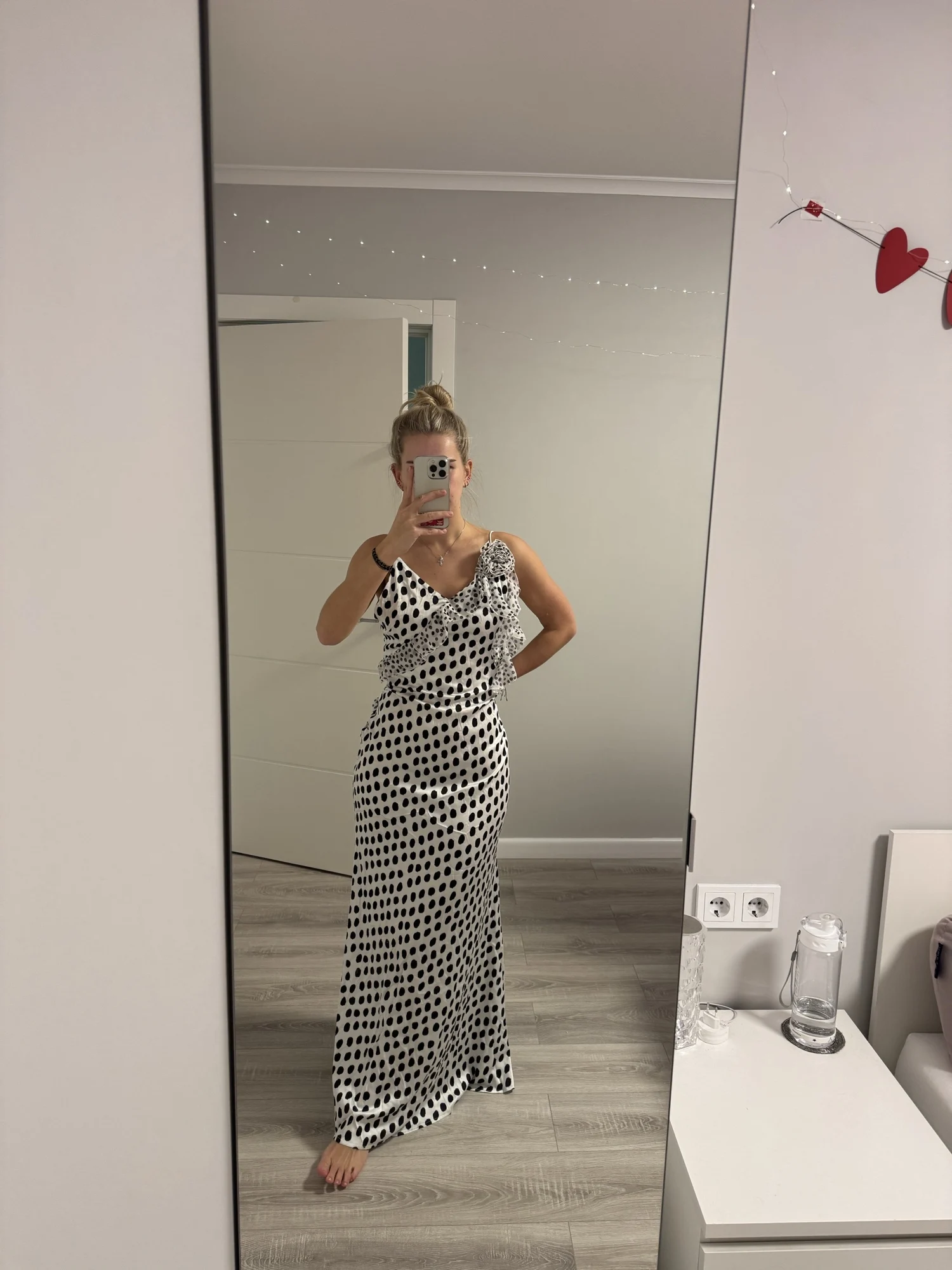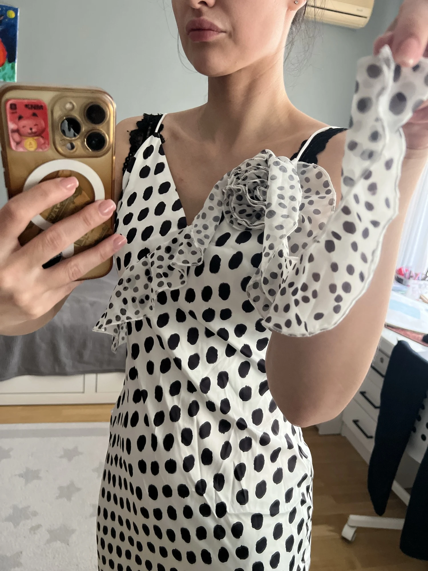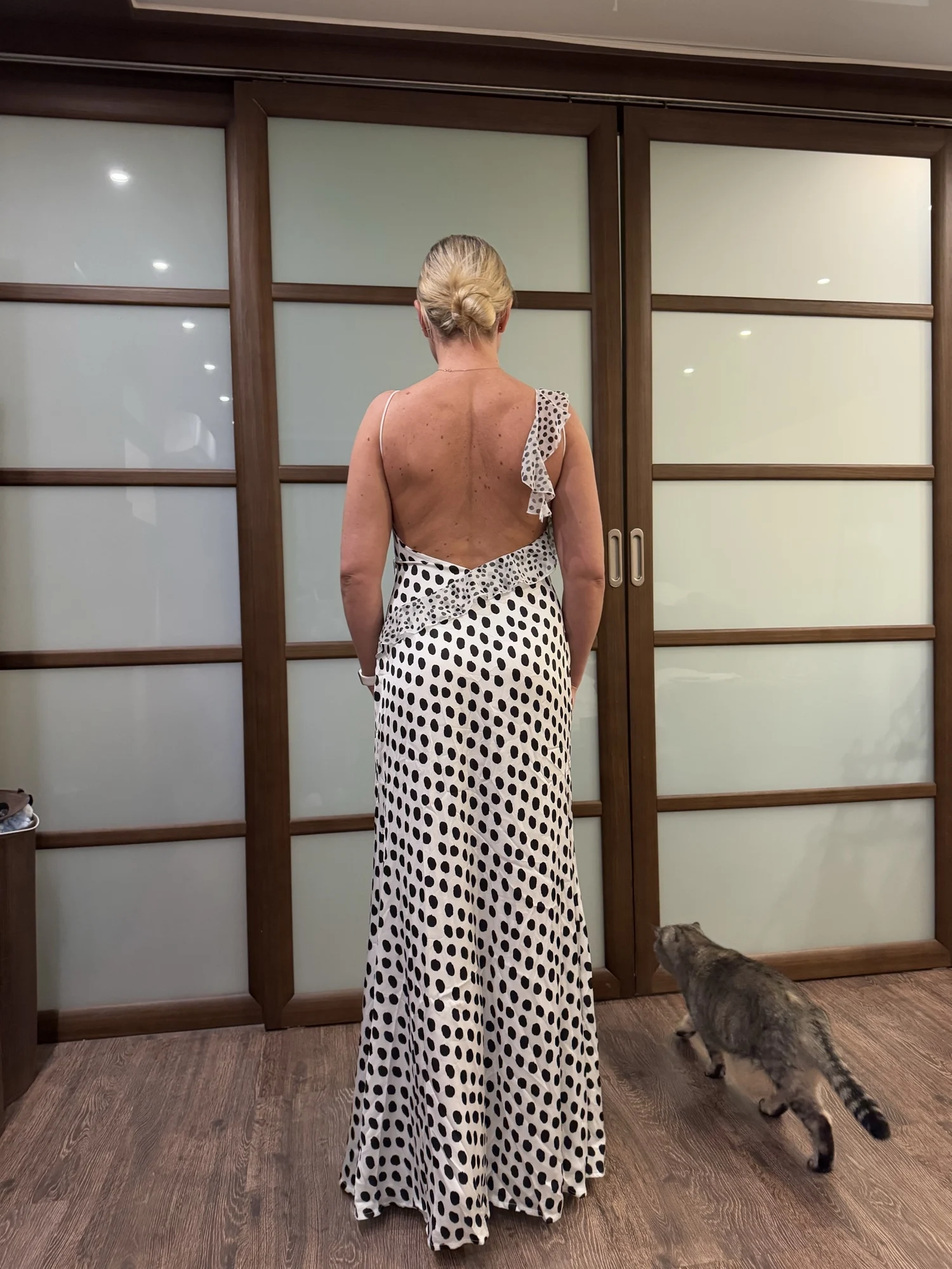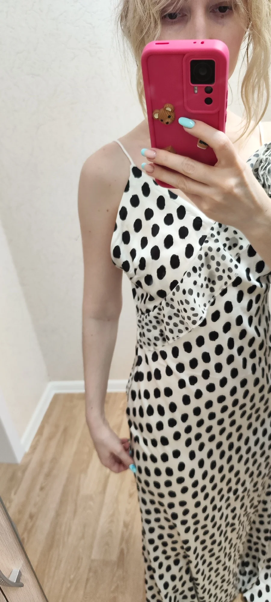 Платье красивое, но отдельно от меня😆 Красиво оформляется спина. Но лямки очень тонкие, сидят не плотно, из-за этого платье легко потерять. В области груди с одной стороны некрасиво торчит. Мои параметры: рост 163, бюст 84, бедра 98Valeria H. 3 апреля 2025