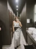 JULISSA MO Sexy Backless 3D Flower Dots Women Maxi Dress White Spaghetti Strap...