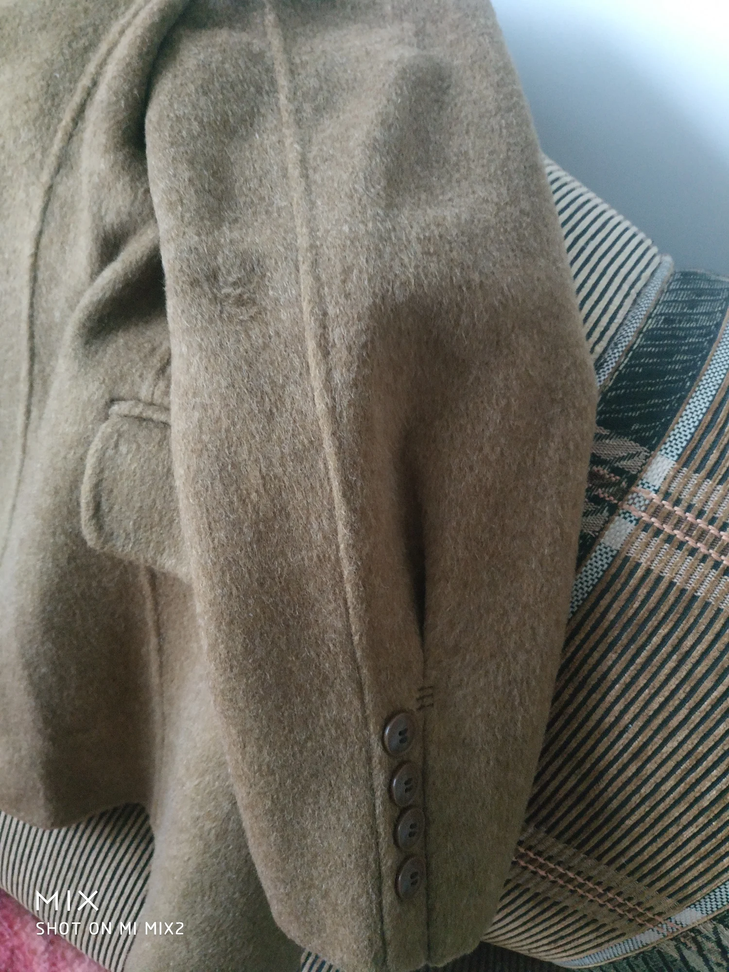 Присоединяюсь ко всеобщим восторгам, натуральная шерсть, великолепное качество пошива, пахнет лавандой и стоит каждого потраченного рубля. На рост 170, 90-68-90 как будто на меня шили - м, долго сомневалась, не взять ли меньше, но сидит очень хорошо и в меньшем размере были бы коротки рукава. Пуговицы, конечно, кошмар, буду менять.Olga R. 7 ноября 2024