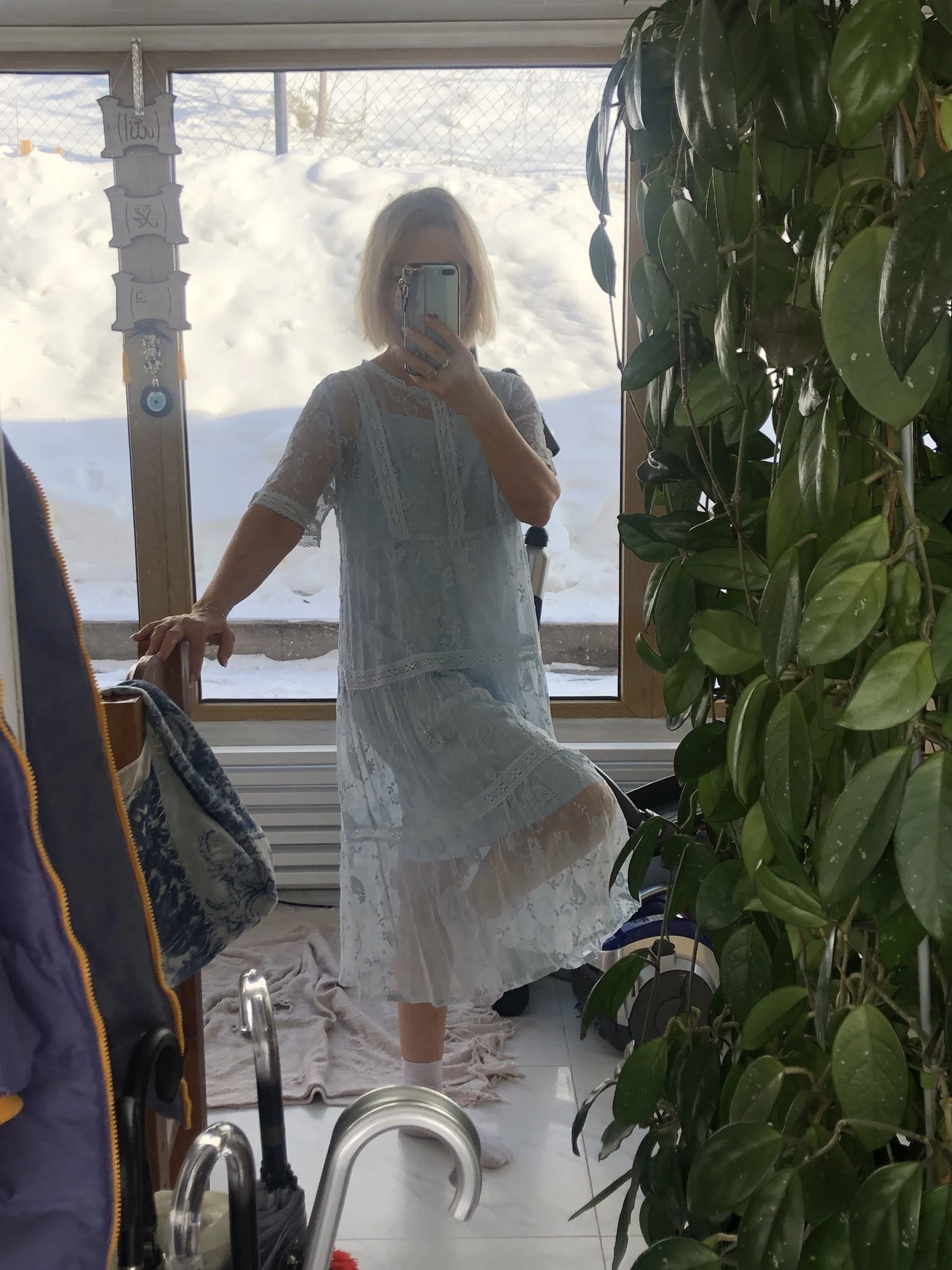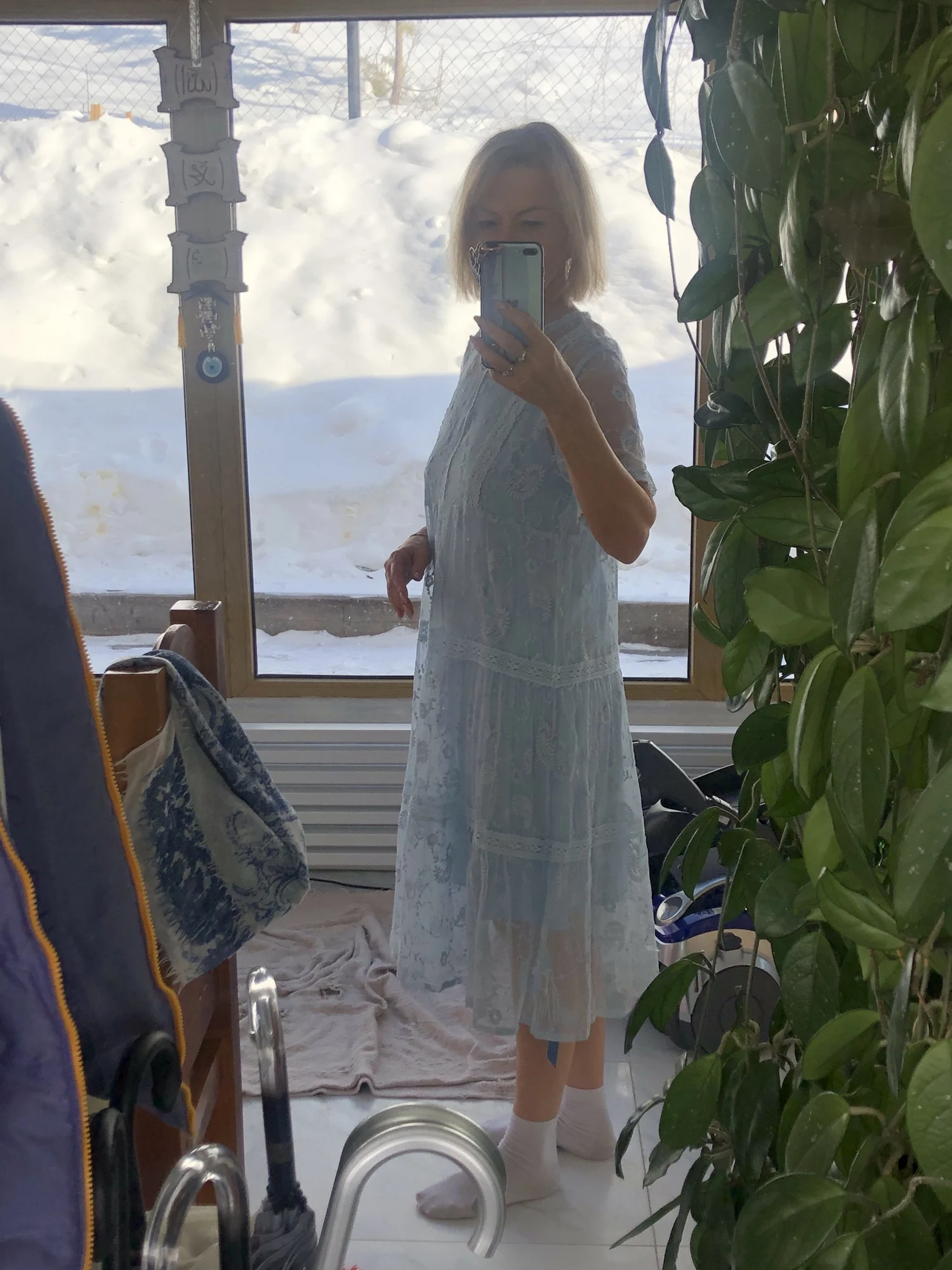 Очень нежное, небесно-голубое. Качественный пошив. Отдельно платье и отдельно нижнее. На лето - сказка. Рекомендую. Купила L. Мои параметры 162 рост, вес 56. Об-95; от-80; ог-90RU s. 12 марта 2024