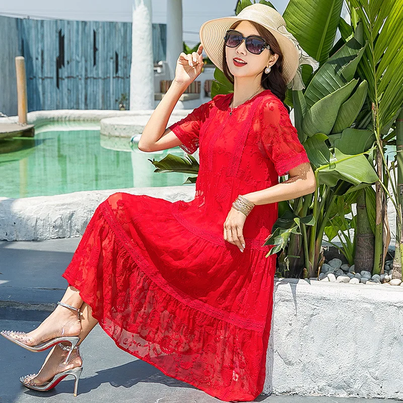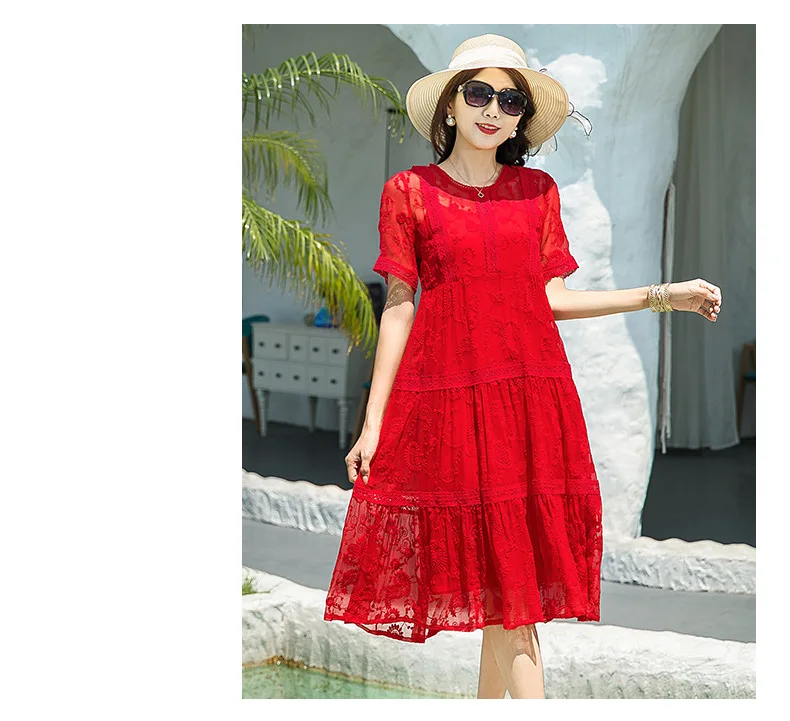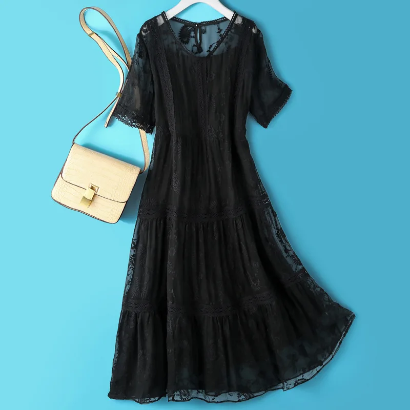 Платье миди из 100% натурального шелка тутового дерева Birdtree, черное Двухслойное Белое платье миди с круглым вырезом и средней длины с вышивкой